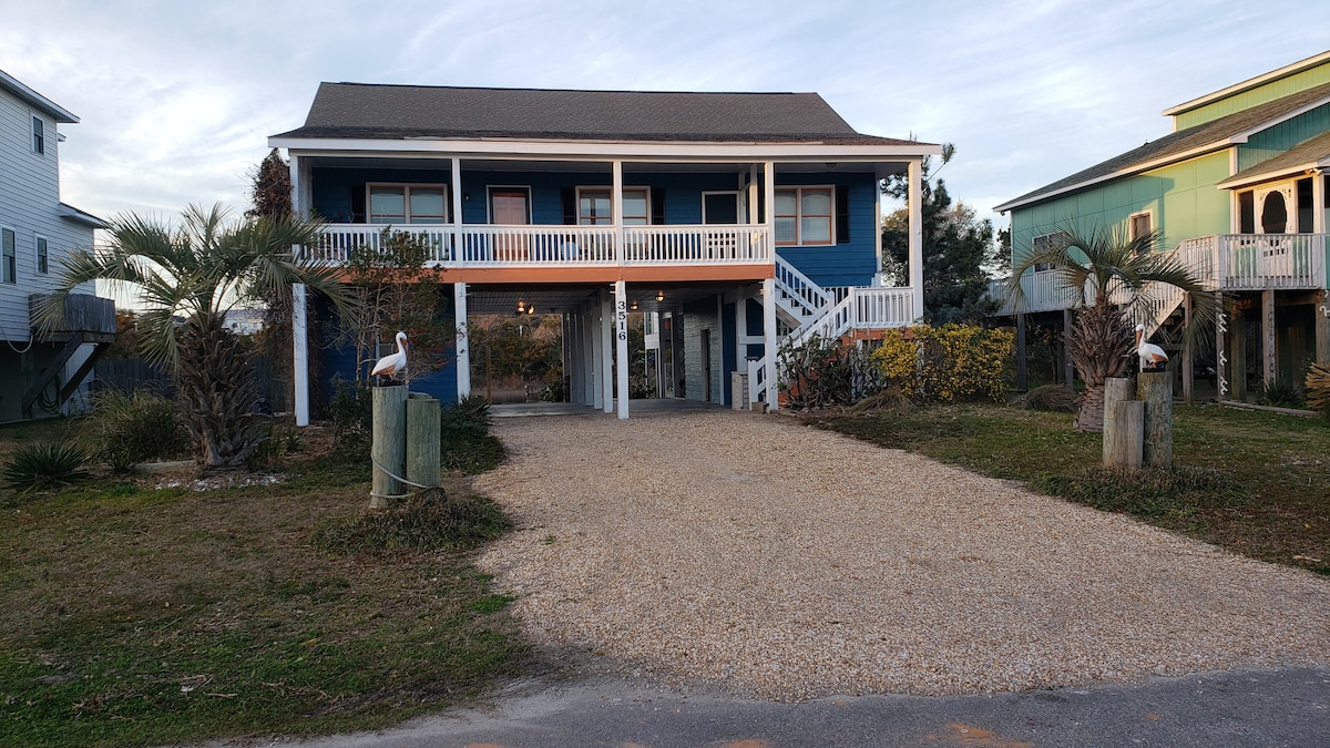 Walk to beach or stay home and gaze out over the Davis Canal watching birds, catching crabs, or drop a toe in and feel the current flow by. Inside enjoy the open living space, great set up for family vacations, or sit in the bath tubs on rear porch or hammocks around a fire pit and relax