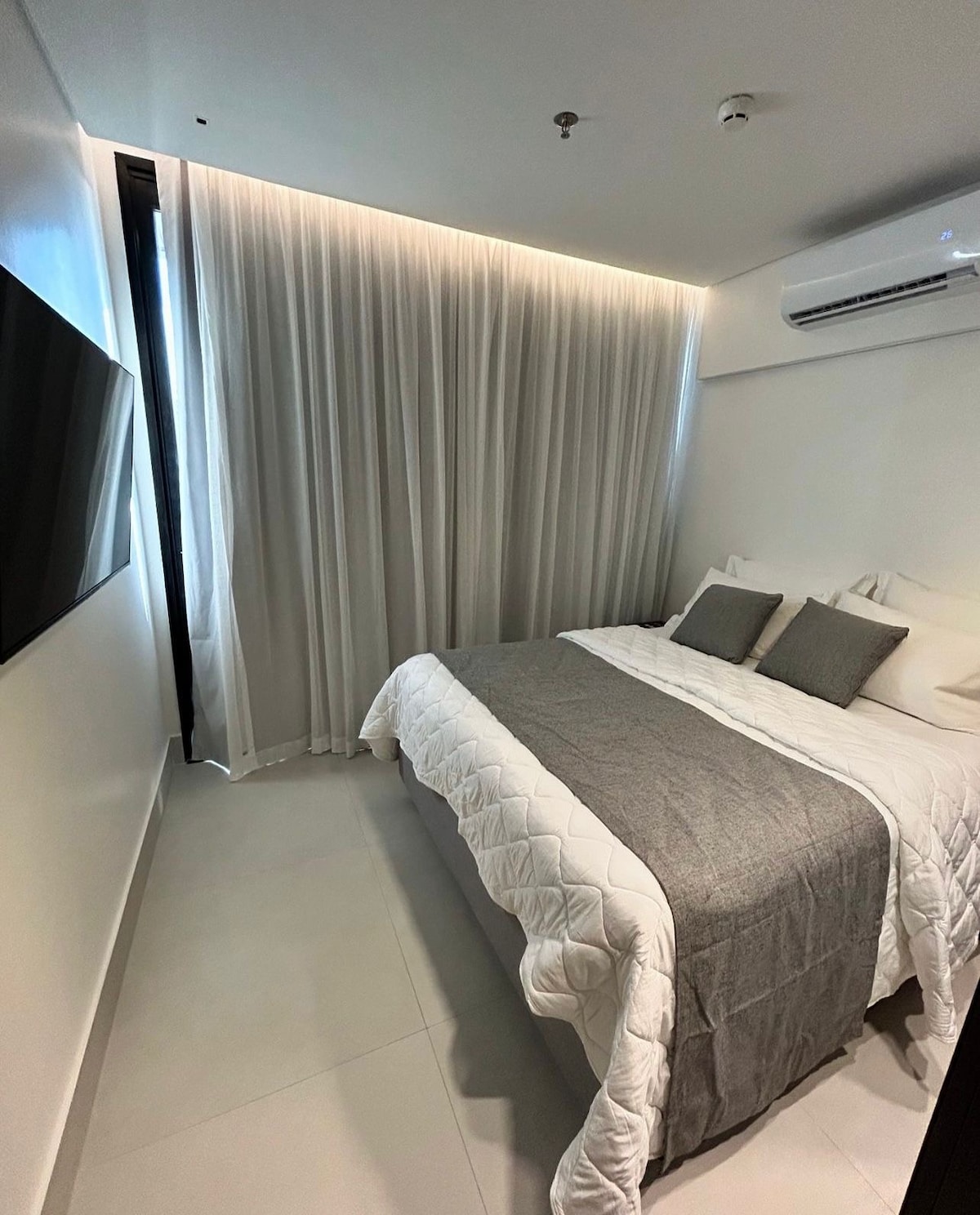 O Malia Beach Experience simboliza a calma, a pureza e a força da água. Divirta-se com toda a família neste lugar cheio de estilo. O apartamento tem 33m2 com fechadura digital, uma suíte completa com Smart TV 42", Ar- condicionado 18mil Btus, Geladeira, Fogão Elétrico 2 bocas, Forno Microondas, Cama box de casal com bicama de solteiro, Sofá-cama e varanda com mesa e cadeira