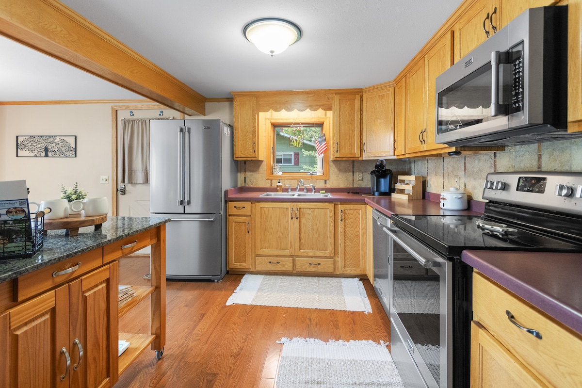 スペリオル湖の南岸にある、職人が作り上げた、オープン/ロフトコンセプト(写真を見てください:本当にオープンです)の湖の家です。夏はパドル、冬はアイスハイキングができます。 息をのむような夕日。300フィート以上の専用海岸線または公共ビーチまで徒歩ですぐです。 素晴らしいキッチン。最大8名様まで、ほとんどの犬も歓迎です。ペット料金:ペットは追加料金25ドルです(キッチンカウンターのハウスマニュアルの横に置いておく場所があります)。焚き火台が組み込まれた景色の良い広いパティオ(薪は持参してください) 私たちと同じように気に入っていただけることを願っています!