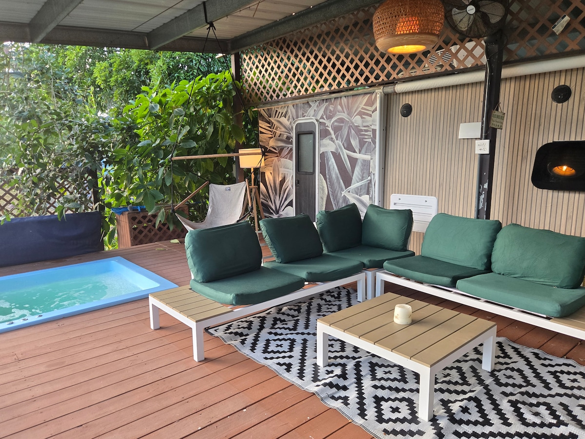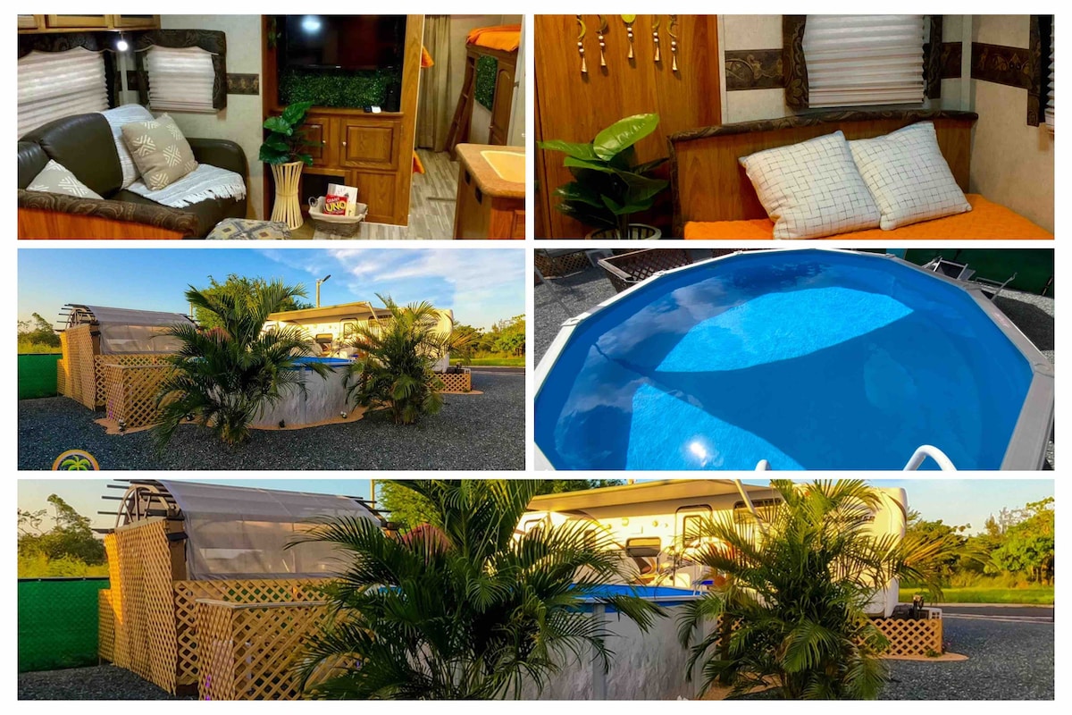 思い出に残る素敵な宿泊先で、自然とのつながりを取り戻しましょう。 プエルトリコで最高のビーチの1つ、ホボスビーチから3分のところにあるプライベートな村です。 3台の高級RV車に分かれており、15名様から最大19名様までご宿泊いただけます。 プール、ジャグジー、ファイヤーピット、屋外シャワー、バスルーム、ガゼボ、屋外キッチン、バレーボール、サッカーネット、全年齢対応のゲームが楽しめる美しい裏庭。 空港から10分、美食天国の中心に位置しています。 友達や家族とビーチや自然を楽しむのにぴったりの場所です。
