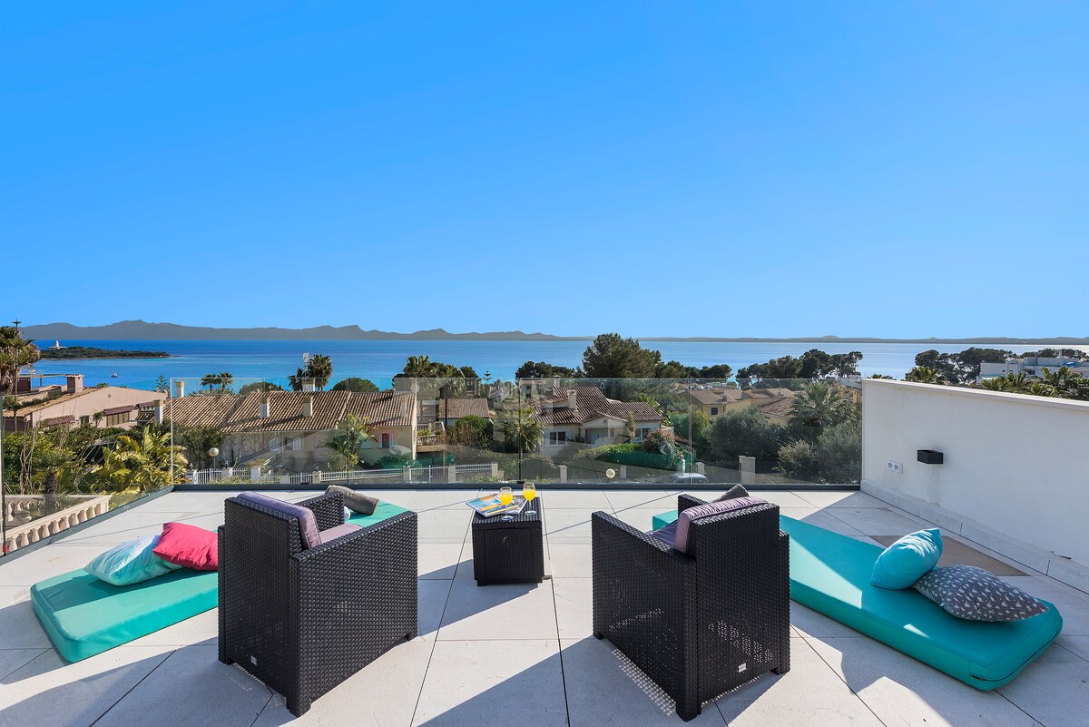 海を一望できるユニークな一軒家。プライベートプール ゴルフクラブとビーチに近く、海の壮大な景色を眺めることができます この家は800平方メートルにあり、357平方メートルのリビングエリアがあります。 広々としたリビングエリア、ダイニングルーム、キッチンは設備が整っており、テラス、5つの快適なベッドルーム、4つのバスルーム、ジャグジー、クロークルームに接続しています。 途切れない海の景色が楽しめるいくつかのテラス、塩水プール、子供用エリア、リラックス、サンデッキ、暖房、エアコン、卫星テレビ、Wi - Fi Weber BBQ
