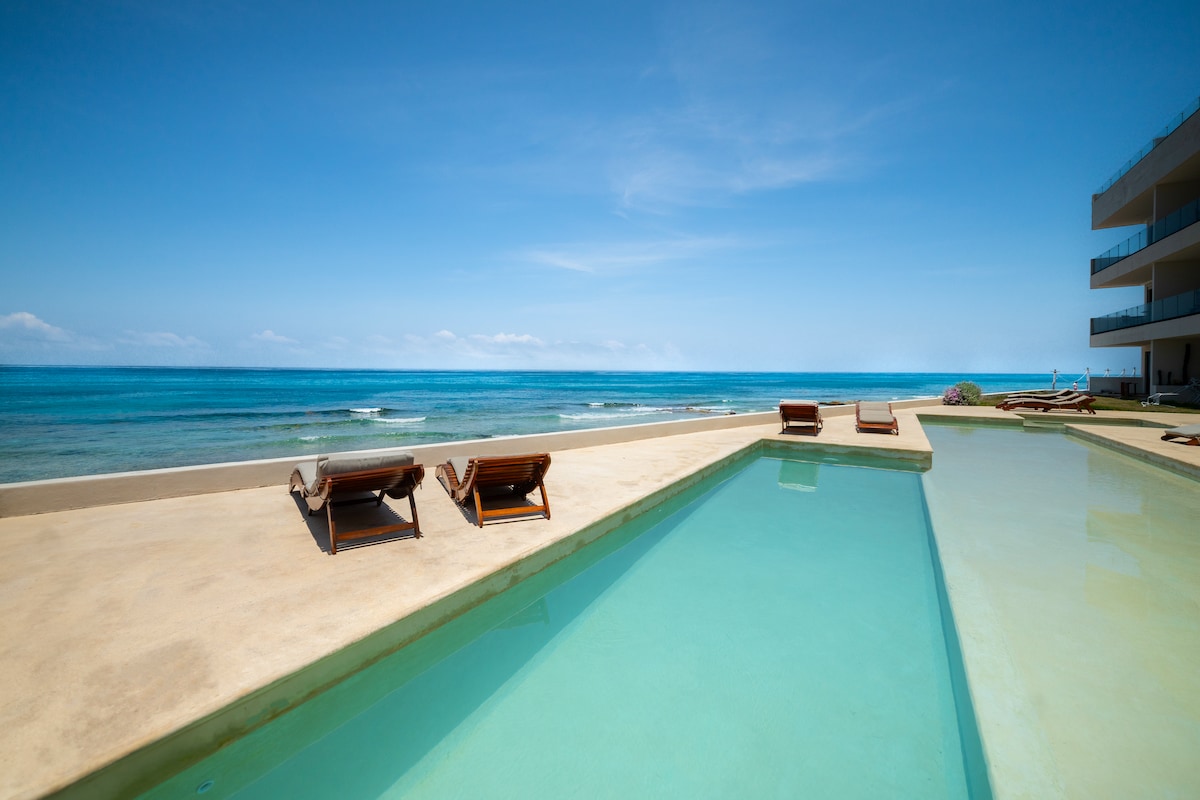 Wake up to the most stunning view of crystal clear turquoise water of the Mexican Caribbean at this gorgeous ocean front 1-bedroom condo located on the ground floor of Sotavento - no stairs/easy access. Provided: Yoga mats, Gym weights, Snorkel gear, Beach toys, Board games, Picnic basket, Massage bed, Valet garment floor stand, Garment steamer, Luggage rack. Within walking distance of many restaurants/beach clubs. **PRICES VARY THROUGHOUT THE YEAR SO CHECK THE PRICE FOR YOUR RESERVATION DATES**