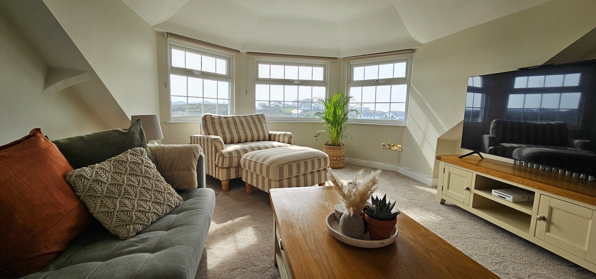 Beachfront home with uninterrupted spectacular views out to the Irish Sea. With private stepped access to the beach, our home comfortably sleeps 4 across 2 bedrooms & 2 bathrooms, but can sleep up to 6 using the sofa bed in the second lounge. Enjoy sunsets from the decking relaxing on our sun loungers or find secluded spots on the cliff tops for even more privacy. The Annexe adjoins Ty Deryn Y Mor (also a holiday let), each has their own private garden, decking and path to the beach.