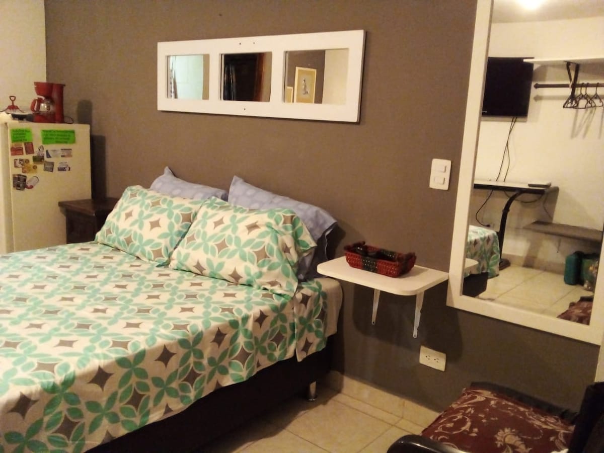 このアパートは、ベッドルーム1室、バスルーム1室、300mbインターネットがあり、コンキスタドレス地区の中心部に位置しています。周辺には4つの公園があり、パラシオ・デ・エクスポジシオネス、プラサ・マヨール、エクスポジシオネス地下鉄駅、33番アベニューの近くには素敵なレストランやナイトライフが楽しめます。 ご自宅のようにくつろぎ、メデジンをお楽しみください! ゲストには最高のものを提供し、安全で良い環境で過ごしていただきたいと思っています。 私たちは、あなたに本当に家のように感じていただきたいと思っています。 エアコン完備。❄️今すぐご予約を!