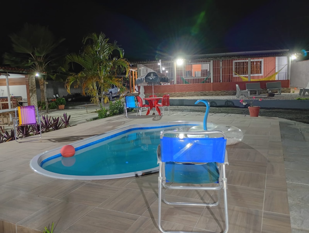 プライベートプールと完全なセキュリティを備えた高級住宅。 家:寝室2室(スイート1室)、合計5ベッド(6人収容可能)、ゲスト用バスルーム1室、フルキッチン、テレビと統合サウンドシステム付きのリビングルーム。 レクリエーションエリア:グルメスペース、バーベキューエリア、プール、シャワー、ゲームルーム(ビリヤード、ビリヤード、アーケード)、2つのソーシャルバスルーム、6台分のガレージ。 フォートオレンジビーチ、バス停、スーパーから数メートルの場所にあります。 Dev. Houseに来てください!