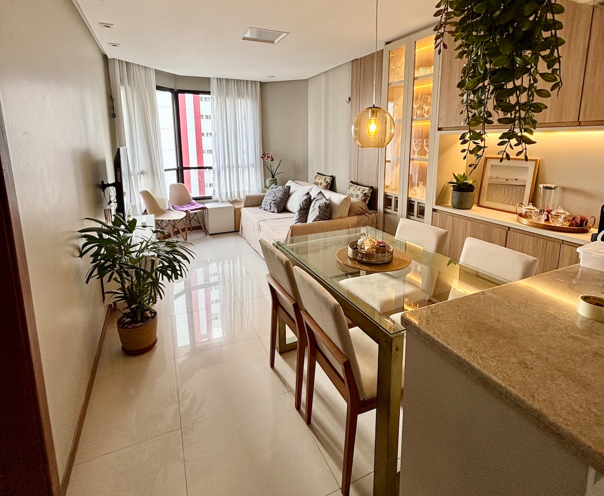 居心地が良く、立地がとても良いアパートです! ビーチから5分、サルバドールコンベンションセンターから5分、市内最大のショッピングモール(サルバドールショッピング)から5分です。 レストラン、バー、マーケットがすぐ近くにあります。 安全 24時間対応のドアマン 建物内に有料駐車場あり コンドミニアム内にはカメラシステムがあります。 快適さ リビングルームとベッドルームにスマートテレビ! 隣には美しい公園があり、窓越しに水平線が見えます!