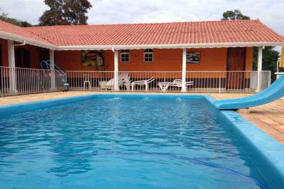 Paisagem lindíssima no campo, passar uns dias e longe de poluição....recuperar a energia.... Temos disponibilidade de até 3 suites, espaço amplo aberto, cozinha externa próxima da área gourmet, mesas para jantar... Lagos para Pesca e um gramado imenso para sua diversão com campo de football! Estamos fechando um grupo por vez na área secundaria que dá p/piscina. *Músicos Welcome: palco disponível *Pode se assar costela, churrasco * Não disponibilizamos roupas de cama, nem banho