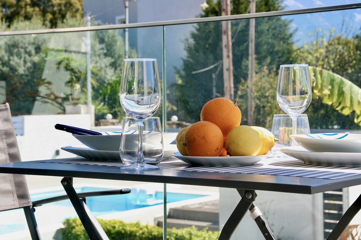 MHTE 04508 K 91000422801 グリーンヴィラ、プライベートプールとパノラマ海景を楽しめる豪華なストーンヴィラ! 古い魅力と新しい豪華さを見事に融合させた石造りの建築/デザインです。 4 ~ 5名様のご宿泊が可能です。 カップル、ご家族、ご友人におすすめです。 設備の整ったキッチン、信頼性の高いWi-Fi、Hi-Fi、ケーブルテレビ、必要なすべての電気機器、エアコンがすべての部屋に備わっています! パノラマビューの専用プールと専用バーベキュー。