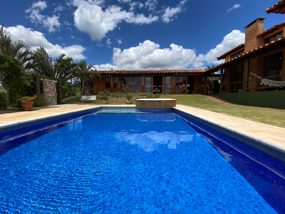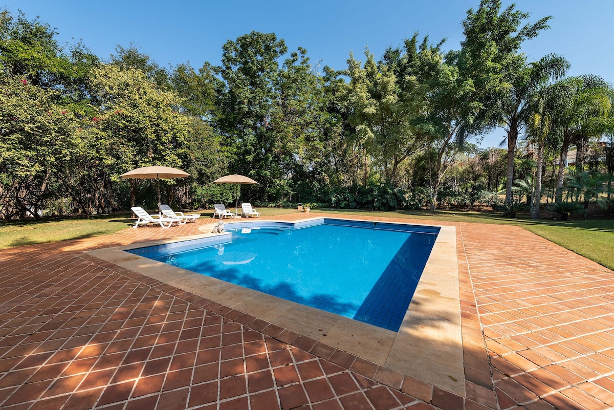 この美しく静かな宿泊施設で、家族や友人とリラックスしてください。 自然に囲まれた環境保護区の特別な景色を眺めながら、滞在中に平和と静けさの瞬間をお楽しみいただけます。 24時間セキュリティが完備された高級コンドミニアム内で、安全に田舎の緑と静けさをお楽しみください。 ペット同伴可能な宿泊施設です。ペットも大歓迎です! - プライベートプール - バーベキューエリア ・テニスコート - サッカー場 -ジム - 24時間営業の市場 -犬小屋