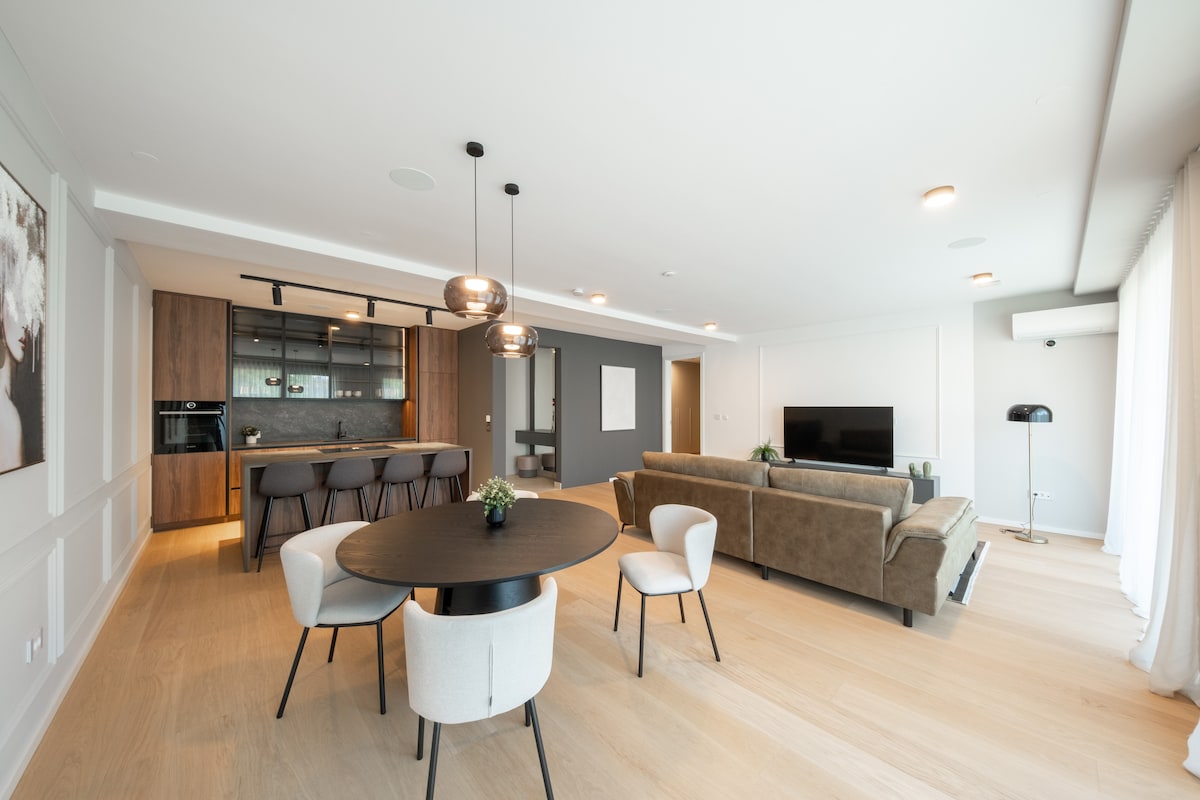 真新しく、完璧な立地で、モダンで家具が完備された高級アパートです。 リュブリャナの旧市街で最も魅力的な場所まで10分未満、主要なバス/電車駅から徒歩わずか数分です。 アパートの下にあるガレージには無料で安全な屋外駐車場があります。 無料の自転車と、屋外座席を備えた美しい専用パティオがあり、朝食をゆっくりと食べたり、くつろいだり、食事をするのに最適です。 セルフチェックイン。1階から直接アクセスできます。 長期滞在歓迎。