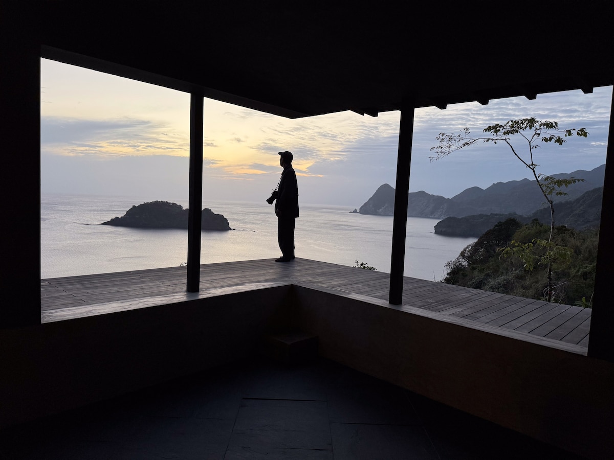 国立公園内 目の前は海だけ 蓑掛岩と夕日と 星空の絶景 灯り職人のアトリエ