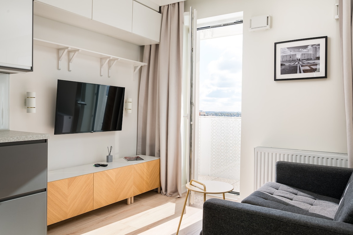 AmSuites -このスタイリッシュなシティアパートメントで、贅沢さ、快適さ、デザインのユニークな融合を体験してください。ロマンチックな旅行、リモートワーク、リラックスした都市での休暇に最適です。 ✨ 注目ポイント - 55m²の専用屋上テラスにある🧖♂️通年温水ジャグジー 📺 55インチスマートテレビ ❄️ エアコン、高速Wi-Fi、フルキッチン - 🚗 安全なガレージ駐車場付き 星空の下でゆっくりとくつろぎ、心静かな快適さの中でリラックスして、ワルシャワでの滞在を忘れられないものにしましょう。