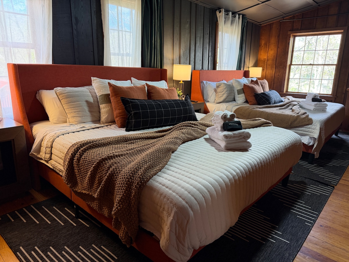 2階建てのログスイートは、カップルにもファミリーにも最適なベースキャンプです。 2つの寝室と2つの広々としたバスルーム、そして小さなキッチンには、IHクックトップと冷蔵庫が備わっています。 ノースカロライナ州キャシアーズの美しさを楽しむ長い週末や短い旅行に最適です。 敷地内にある醸造所「ホワイトサイド・ブリューイング・カンパニー」までハイキングに行って、素晴らしい料理と飲み物をお楽しみください。 このスイートは、「エール」であなたを癒すこと間違いなしです!;)