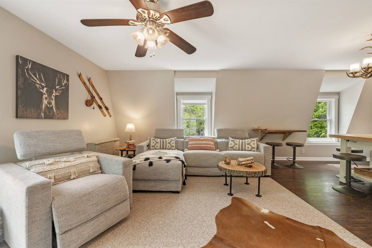 新しく改装されたコンドミニアムから、本当に素晴らしいホワイトマウンテンの景色をお楽しみください。スキー、ハイキング、ショッピング、レストラン、ストーリーランド、近くのノースコンウェイ&ジャクソンのすべての観光名所から数分です。 キッチン、洗濯機、乾燥機、暖炉、エアコン、スマートテレビ、Wi-Fiとインターネットがあります。 快適なキングベッドとリビングルームにクイーンサイズのソファベッド。 ノルディックビレッジリゾートでは、テニス、スイミング、池、ジム、ゲームルーム、屋内/屋外プール、サウナ、ジャグジーをご利用いただけます。これらはすべてご滞在に含まれています!
