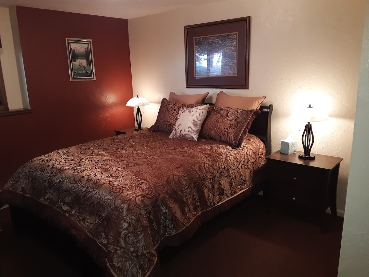 快適で居心地の良い、家具が完備された、2ベッドルームの階下アパート。 専用のジャグジー!、専用玄関、専用駐車スポット、キッチネット(電子レンジのみ、コンロやオーブンはありません)、 グランドティトンとティトンバレーの素晴らしい景色。ティトン川での世界クラスのマス釣り場まで3マイル。グランドターギースキーリゾートまで35分。国有林のトレイルへのアクセスまで0.5マイル、エリア内には450マイル以上のトレイルがあります。 イエローストーン国立公園まで車で1.5時間、ジャクソンホールと3つの国有林まで45分以内。