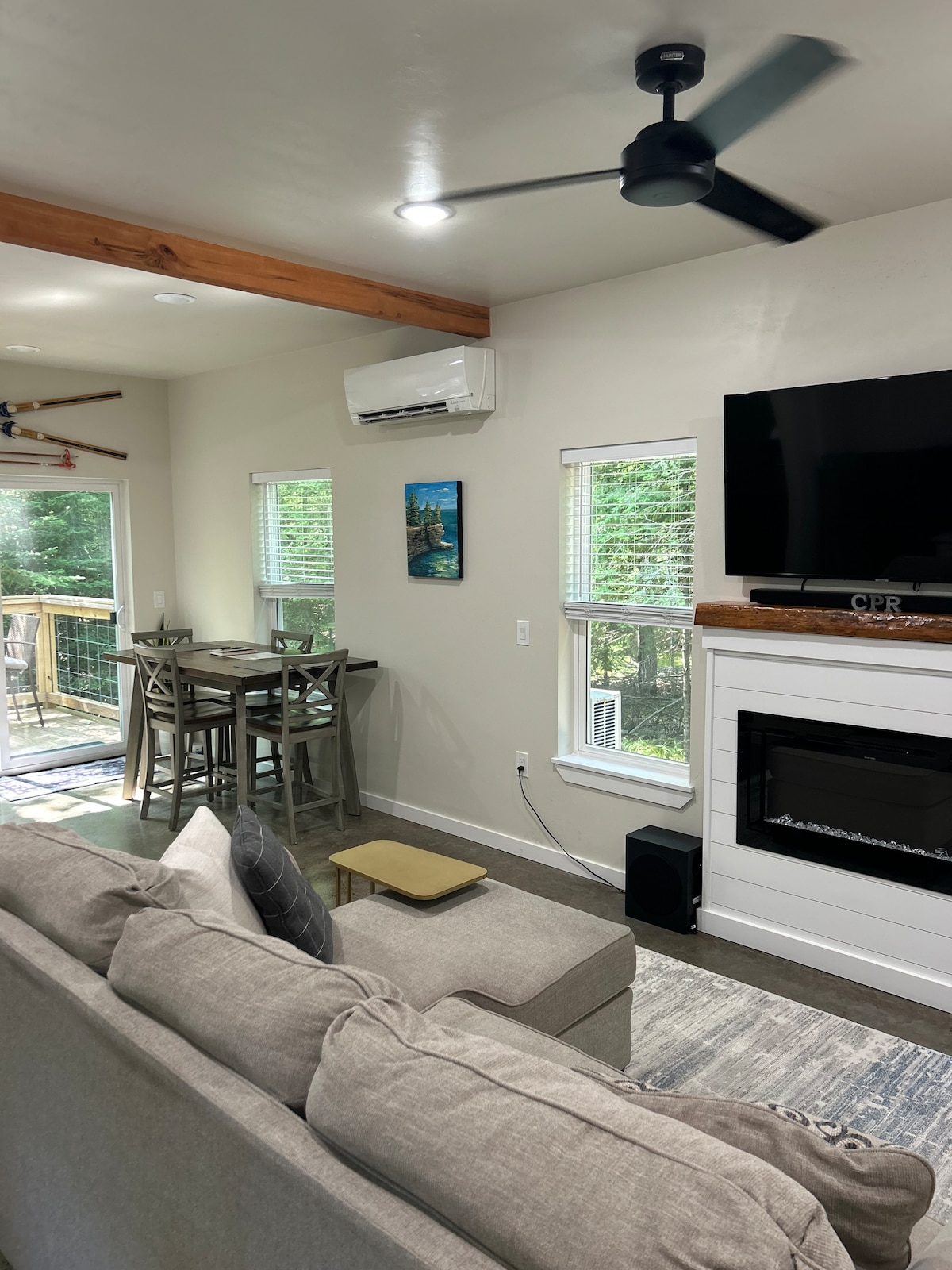 こちらの静かでおしゃれなお部屋で、のんびりとおくつろぎください。ホワイトフィッシュデューンズ州立公園の有名なケーブポイントのアトラクションから1.5マイルの場所にある私たちのコテージには、楽しくリラックスした平和な滞在に必要なものがすべて揃っています。郡内のすべての主要な町、ベイリーズハーバー、エッグハーバー、スタージョンベイ、フィッシュクリーク、シスターベイから15 ~20分。私たちのスペースは2024年に完成した新築で、ステンドグラスのコンクリート床、電気暖炉、高級な仕上げ、大きな裏庭、共用サウナが備わっています。