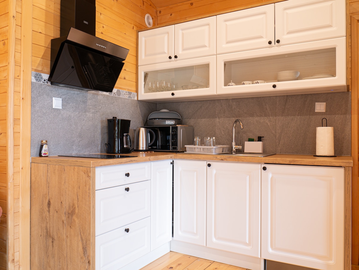 Jabzówkaの住居は、ズヴィェジニエツから4キロメートル離れた絵のように美しいトゥジニエツ村にある70年前の木造の小屋です。ロストチャニの森に囲まれた村は、黄土の渓谷、ヴィエプシュ川の谷、そしてまだ耕作されている美しい畑の広がりに魅了されます。 小屋は、天然素材を使用して、最大限の注意と愛情を持って改装されました。中は、伝統的な粘土のプラスターで覆われた壁、板張りの床、田舎の木製の窓が健康的な微気候を提供します。
