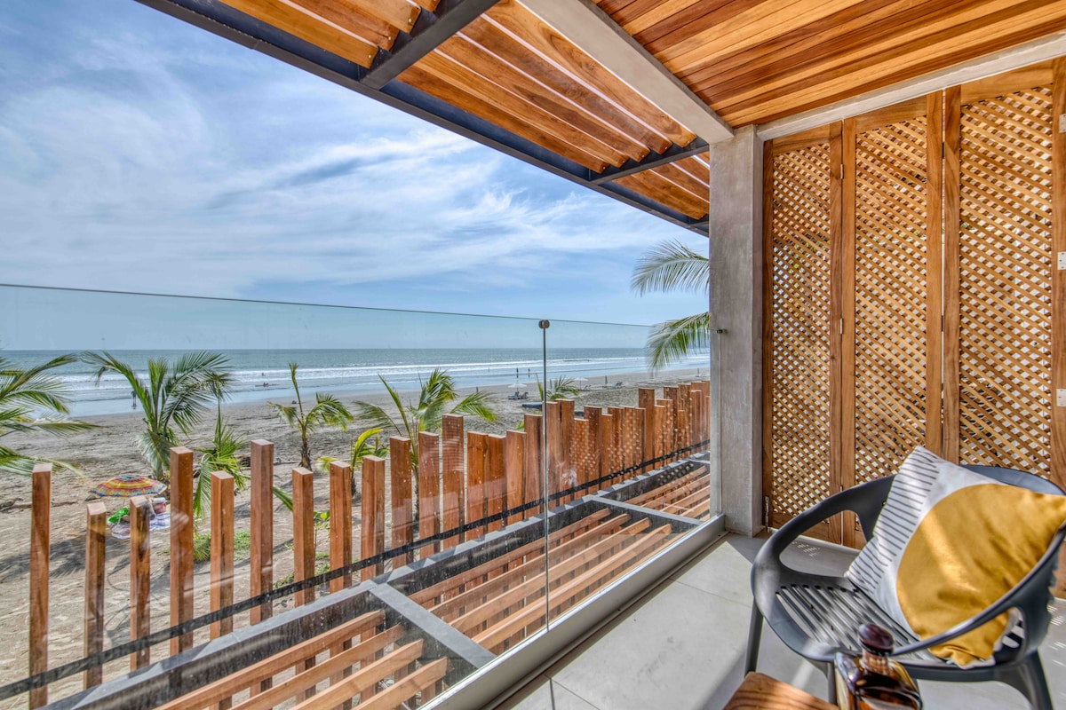☀️🌴BEACHFRONT VILLA🌴☀️ Experience an unforgettable stay at our beachfront casa, where every floor and luxury bedroom offers stunning ocean views. The top-floor social hub features a cocktail pool and private balcony for breathtaking sunsets. Enjoy the full-size kitchen, private patio, and ensuite bathrooms, along with street parking and complimentary concierge service. Located within easy walking distance to downtown, this entire house combines privacy and elegance with free high-speed WiFi.