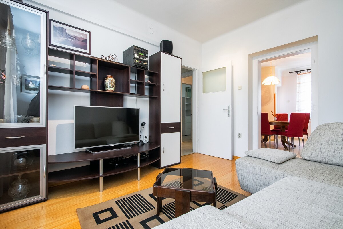 海辺に位置し、ディオクレティアン宮殿とマージャン森林公園から徒歩10分のところにある、古い街、マリーナ、島々の素晴らしいバルコニーからの眺めを楽しめるアパートメントです。Splitを体験できる絶好のロケーションです。