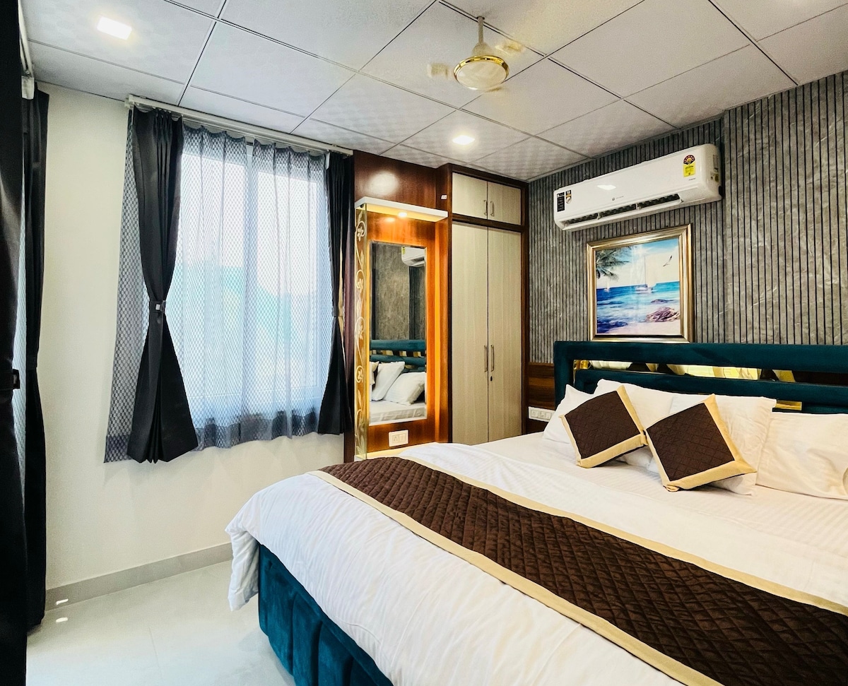 マンサローバル地下鉄駅近くのSamriddhi Blissで、文化的な魂を感じながら5つ星の快適さをお楽しみください。ラジャスターンのインテリア、広々とした客室、設備の整ったキッチン、温かいおもてなしを備えた、ラグジュアリースイートのような空間です。手作りの美しさに囲まれて、リラックスし、料理をし、スタイリッシュにくつろぎましょう。