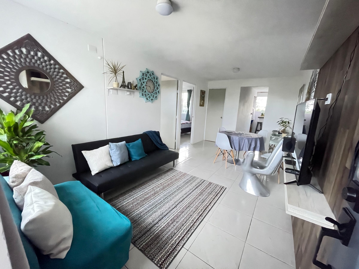 すべてのサービスが揃った家具付きのアパート、ダブルベッドとシングルベッドを備えた2つの寝室、エアコン、バスルーム、リビングルーム、キッチン、洗濯機、乾燥機。隣にミニスーパー(ファスティ)。パドルテニスコート*、サッカー場、ウォーキングトラック、プール**などがあるレクリエーションパークを訪れてください。 *ご予約が必要です。ラケットとボールは別途レンタルとなります。 **営業時間は火曜日から日曜日、午前11時から午後8時まで
