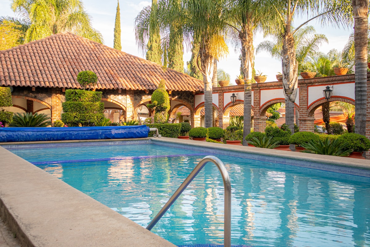 アシエンダタイプの家 暖炉、自然の平和を感じることができる広い庭園エリア、お子様との午後や友人とのバーベキューを楽しむことができます。 子供たちは遊んだり走り回ったりできます また、5 x 4のプールもあります。 暖かい時期には温かく 冬は冷たいです WiFi、バルコニーにはハンモックが備わっており、景色を楽しむことができます。 都会の喧騒から離れるのに最適です。 疲れていたりストレスを感じている場合は、最適な場所です グアダラハラの渓谷と動物園の近くにあります