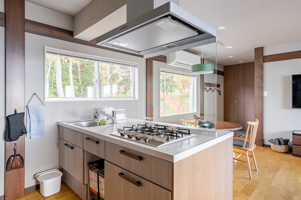 疲れた身体にヒーター付マッサージチェア完備!白馬中心地から自然を楽しもう! 白馬みそらの別荘エリアにある新築の2世帯玄関完全独立型バケーションハウスです。 別荘地エリアの入口部分に位置し、静かな環境でありながら主要道路へのアクセスはとても良好。 コンビニ、居酒屋、スキーシャトルバス停へは徒歩1分。スーパー、ドラッグストアやレストラン多数徒歩圏内。 グリーンシーズンはリゾート周遊バスが徒歩1分の場所に停まります。車では八方名木山4分、Hakuba47まで5分、五竜8分。スキーシーズンは白馬八方、Hakuba47、五竜、いいもり、栂池高原へ乗換無しのバス発着。バス運行期間はWEBでご確認下さい。川遊びスポットまで徒歩3分! 敷地内に2台分の無料駐車場完備。 マッサージチェア+テレビは大型50インチ!可動式なのでダイニング側に向けたり、ソファ側に向けたり自由に動かすことができます。地上波はもちろん、NetflixやYoutubeは見放題。 2019年新築のため、すべての備品は新品かつ最新の機能を備えており快適に長期滞在いただけます。感染症予防手順を順守し清掃を実施しています。