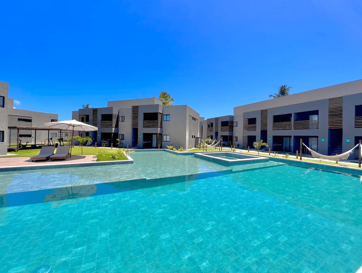パタチョビーチに近い私たちのスペースは、私たちが旅行で大切にしているすべてを提供するように設計されています。大人6名様まで収容可能なフルスイート2室、バーベキュー付きの専用バルコニー、各部屋にエアコン、設備の整ったキッチン、洗濯機と乾燥機を完備!ユニークな滞在をお約束します! さらに、ジム、プール、ジャグジー、遊び場、24時間対応のフロントデスクを備えたフルリゾートスタイルのコンドミニアムをご利用いただけます。ロケーションは最高で、レストランやミラグレスとジャパラティンガの美しい自然に近いです!