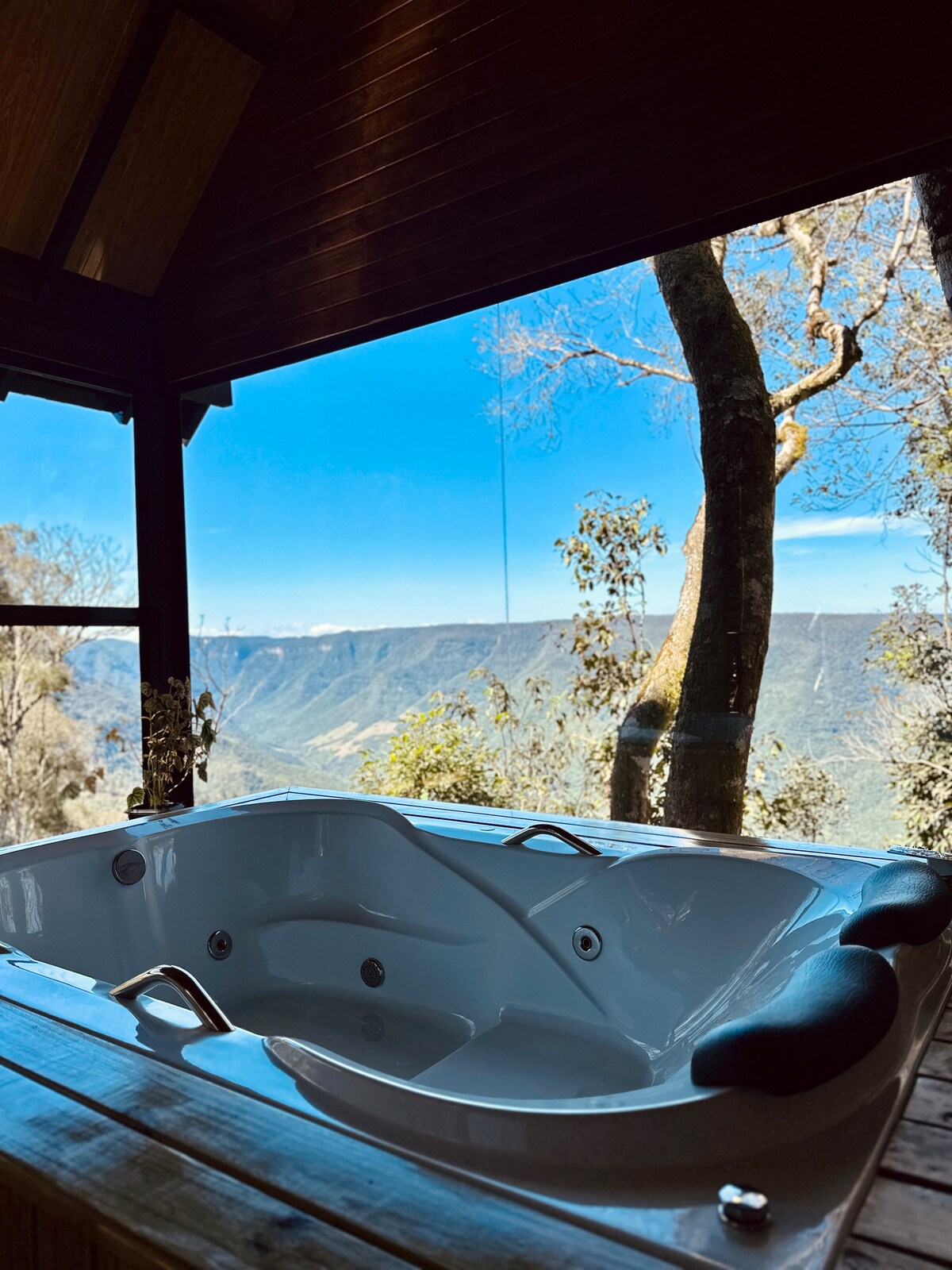 Chalé romântico com banheira e vista para o Canyon