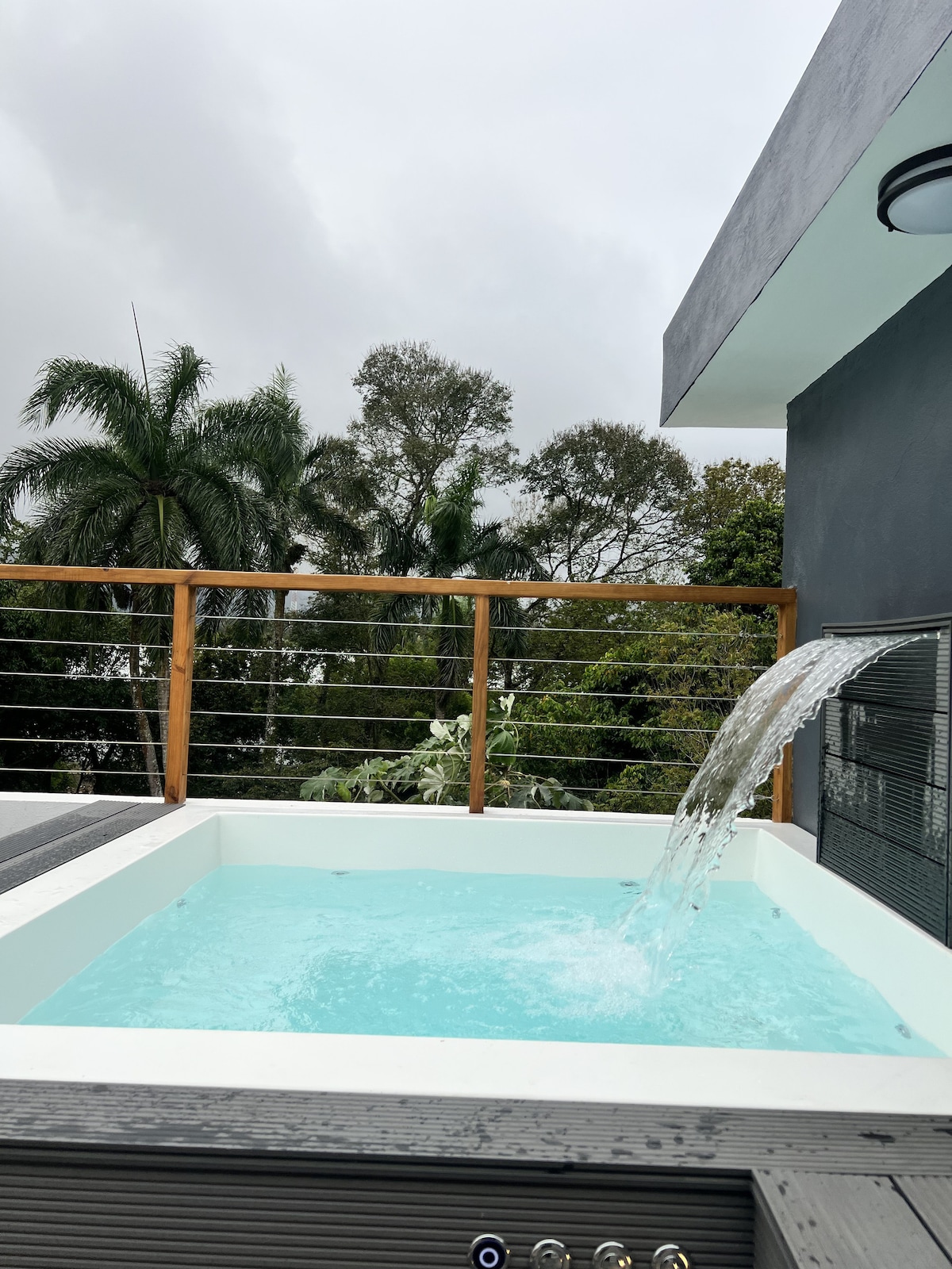 こちらの落ち着いた宿泊先で、ご家族一緒におくつろぎください。プール/ジャグジーを渡る橋、フルデッキ、明るくて川の景色、温水がある、ユニークでスタイリッシュな宿泊施設です