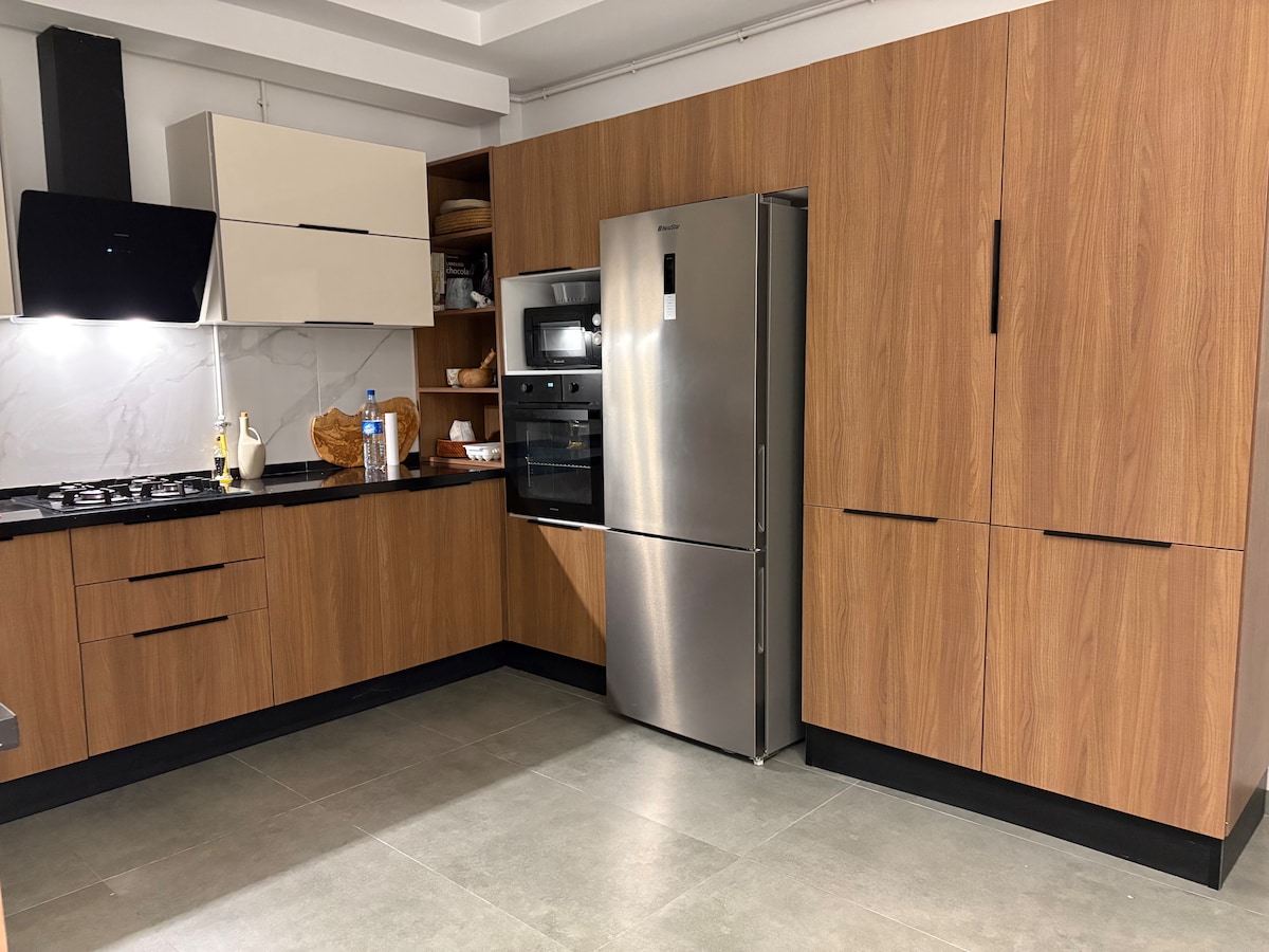 新築の高級マンションで、チュニス・カルタゴ空港から15分、カルフール・マルサから5分です。このファミリー向けの宿泊施設は、すべての観光スポットやアメニティ(カフェやレストランなど)に近いです。 アパートは静かで安全な住宅地にある6階建ての建物にあり、エレベーター付きです。 アパートは、寝室2部屋、広いリビングルーム、バスルーム、バルコニー、設備の整ったキッチンで構成されており、地下駐車場を無料でご利用いただけます。