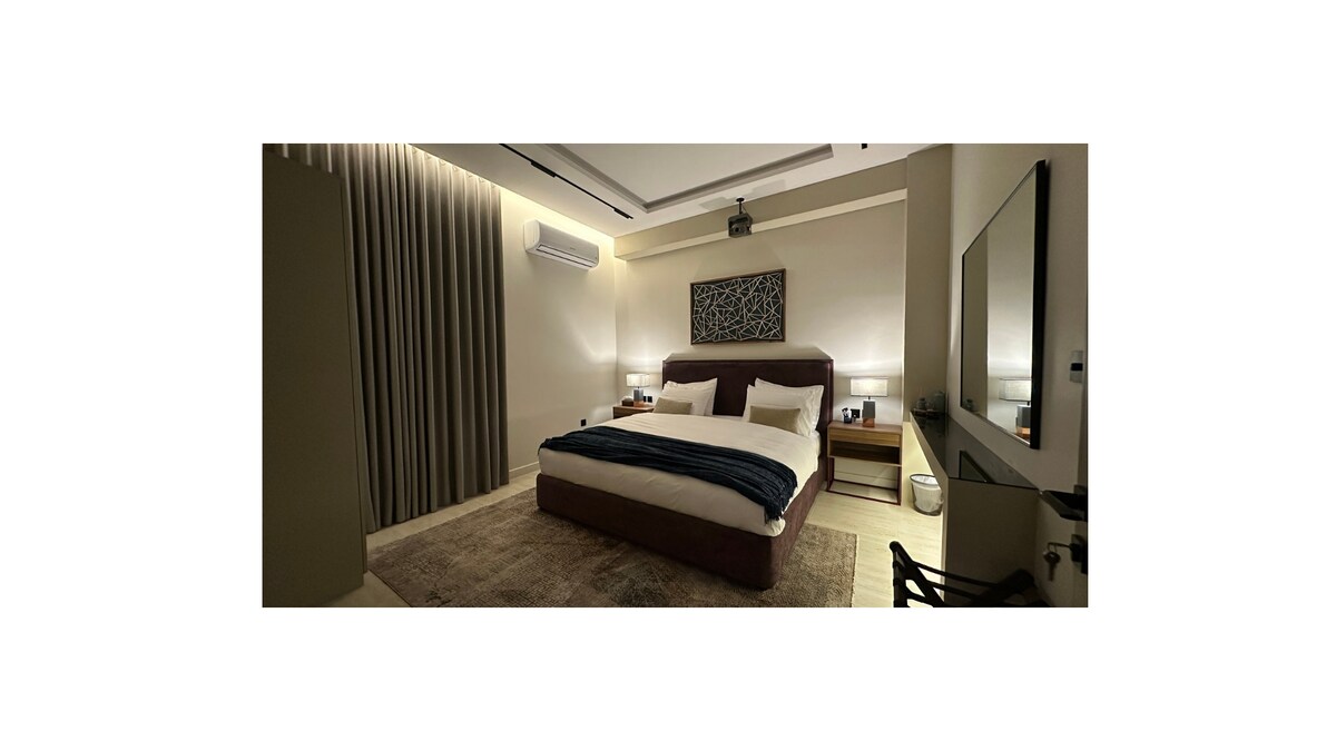 簡易キッチンと居心地の良いパティオを備えたスタイリッシュなスタジオアパートへようこそ。一人旅、カップル、ビジネスゲストに最適です。ストリートパーキング(限られた日陰のある専用駐車場があり、予約時にリクエスト可能)、Wi-Fi、エアコン、薄型テレビをご利用いただけます。キング・アブドゥルアジズ空港からわずか10分、モール・オブ・アラビアから5分の便利な立地です。フルキッチン、快適なベッドルーム、リラックスできるパティオをお楽しみいただき、完璧なご滞在をお楽しみください。