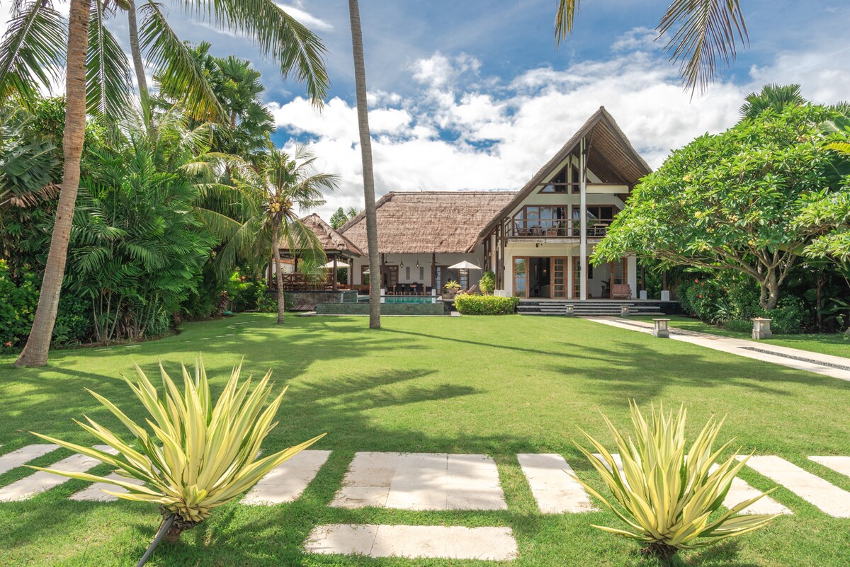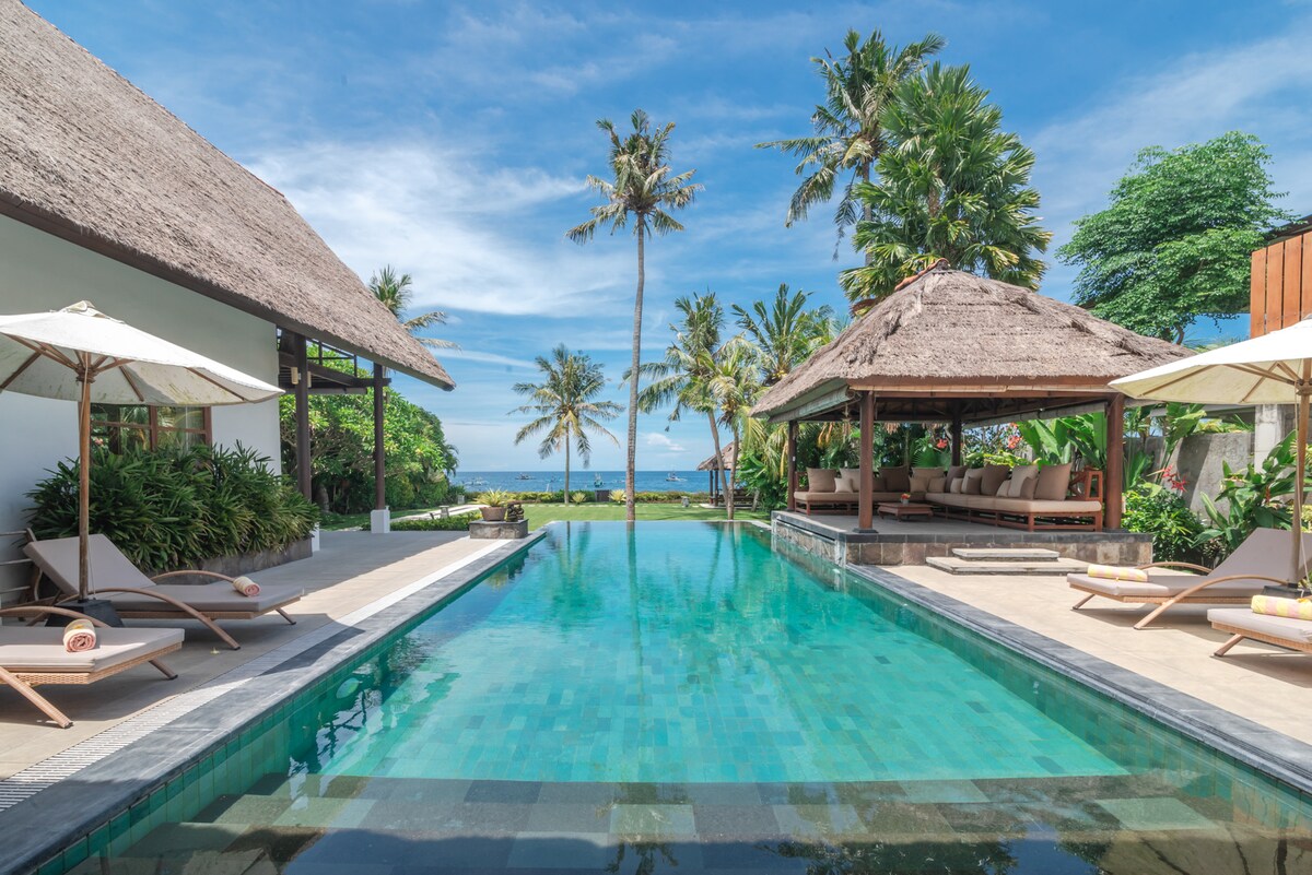 バリ島の広々としたオーシャンフロントヴィラで、素晴らしい景色とゆったりとした空間をお楽しみください。熱帯植物の庭に囲まれたヴィラには、専用プールと開放的なリビングスペースがあり、静かな休暇を楽しめます。快適でストレスのない滞在をお約束するため、私たちの親切なスタッフが毎日の清掃を行い、必要なものがあれば何でもお手伝いします。海辺でリラックスしたい家族連れ、友人同士、カップルに最適です。