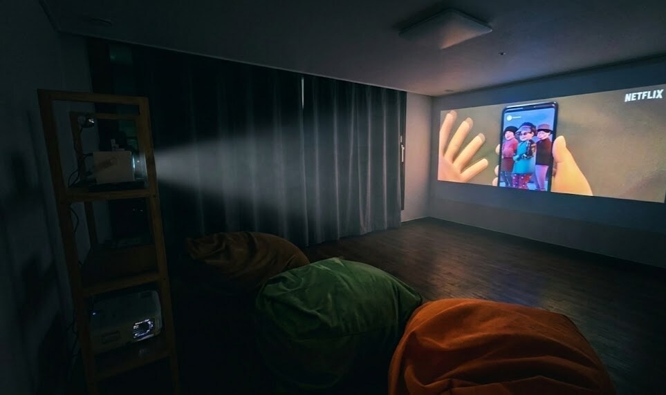 ❤ 海辺の都心にある大型スクリーンのマンション ♥ LGシネマビーム、Netflix、YouTube ♥ Quick Sleep クイーンサイズ ハニーベッド2台 ♥ セルフチェックイン 温かいロマンチックハウスの感性スペースです:) 居心地の良いソファーと高画質ビームシネマ 感性的なサウンドは無料で提供しています^0^ Netflix、YouTube、テレビなど、お好きなチャンネルをお好きなだけご覧ください〜 快適な感性空間で広いソファーと清潔な寝具、シネマビームで楽しい休息と居心地の良い空間を提供します^^