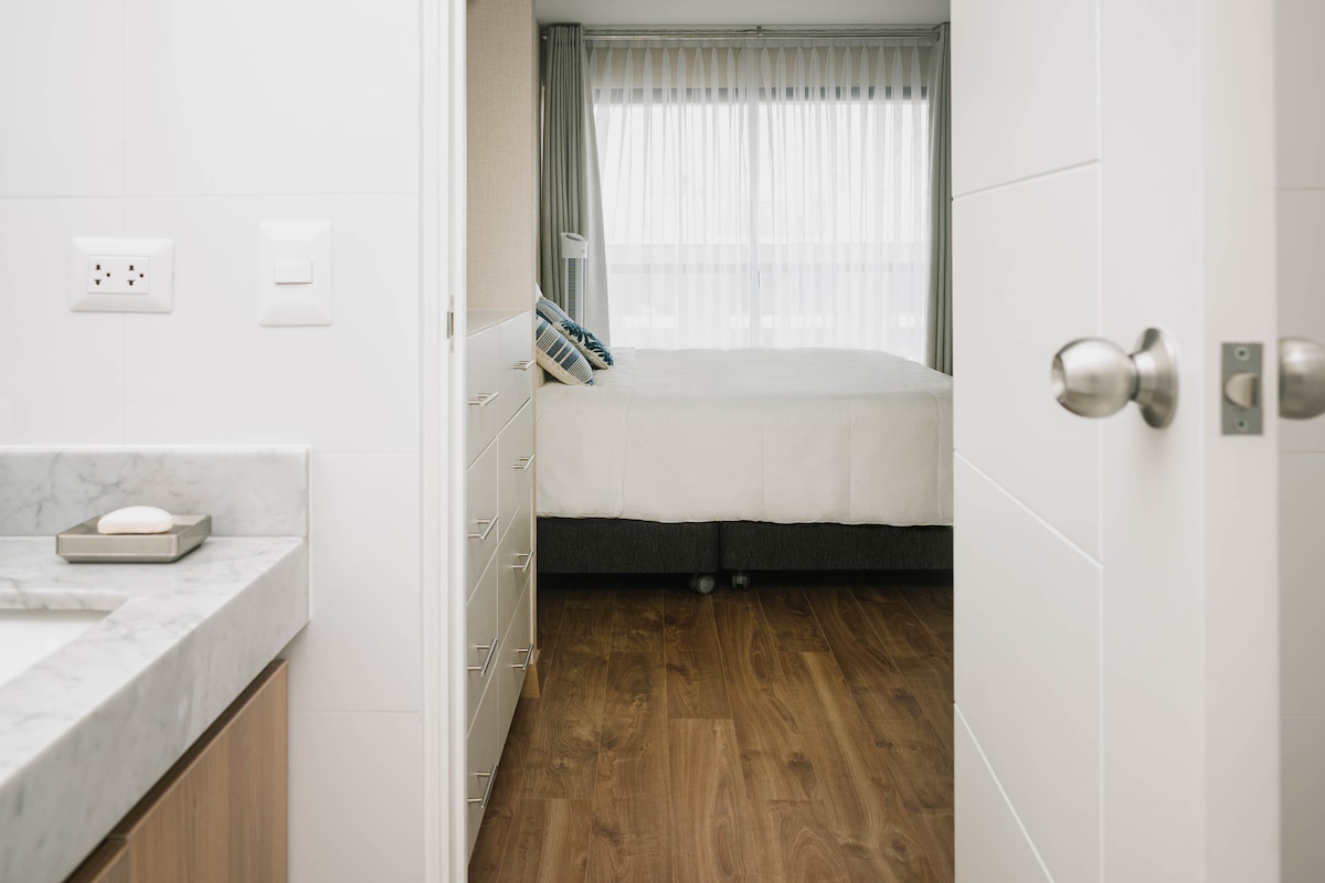 La habitación es totalmente privada y diseñada para viajeros que buscan un alojamiento funcional y sofisticado, con un toque de naturaleza. Está equipado con todo lo necesario para un descanso y baño placenteros, con espacio para trabajar y una bella mesa de madera para comer o tomar algo disfrutando de la amplia vista a la Av. Larco, que está solo a una cuadra de distancia. La ubicación es ideal para que llegues caminando a todos los puntos turísticos. Importante: Las visitas están prohibidas