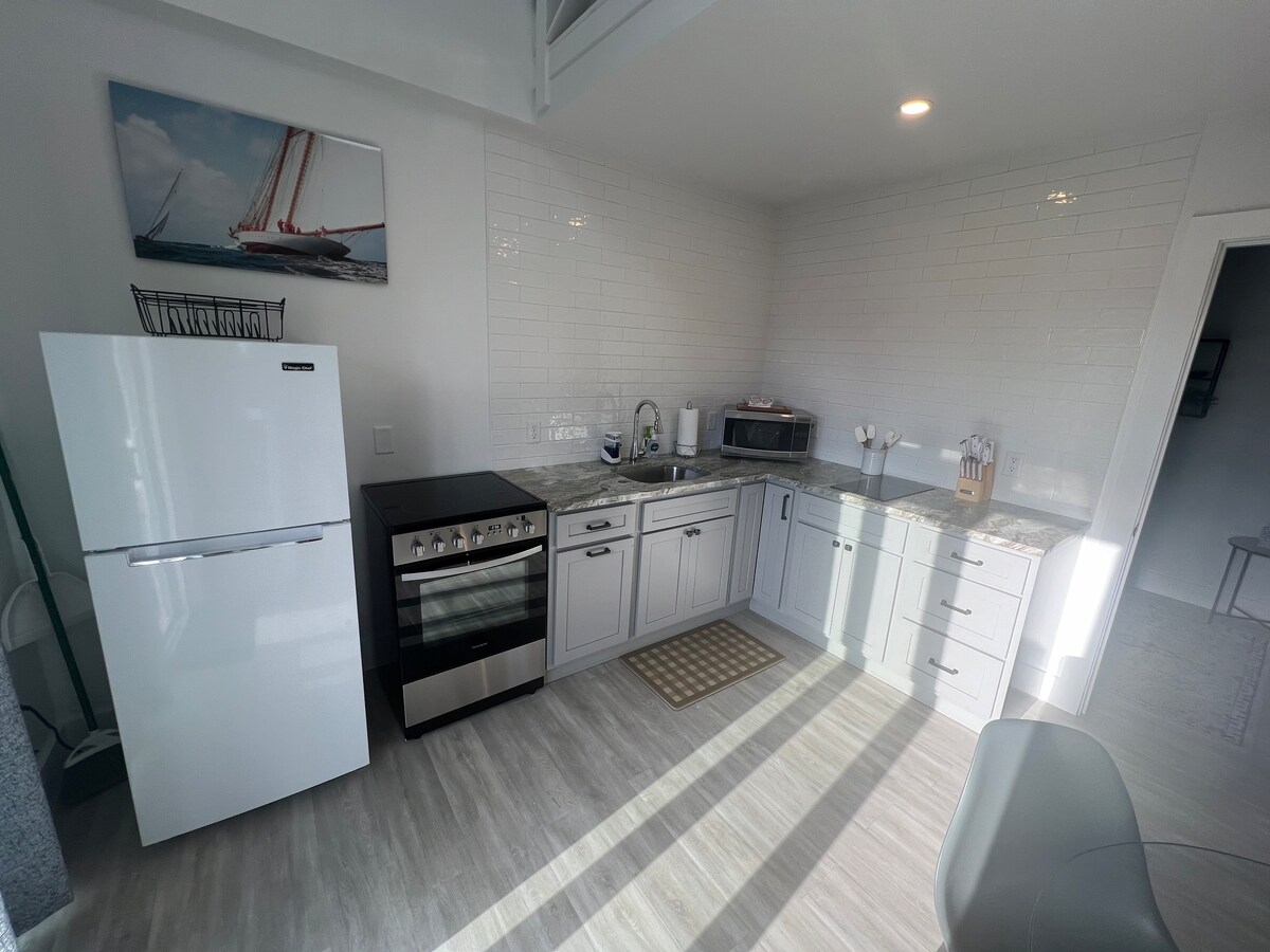 ナンタケットで最高のロケーションに滞在しましょう!このスタイリッシュなダウンタウンのコンドミニアムはオーシャンビューを楽しめ、フェリーから徒歩4分、トップレストラン、ショップ、ナイトライフからすぐ近くです。カップル、お友達、ひとり旅の旅行者に最適です。専用玄関、セルフチェックイン、Wi-Fiとエアコンを完備したお部屋をお楽しみください。カフェ、美術館、ギャラリーまで徒歩で行けます。自転車、バス、タクシーに簡単にアクセスでき、ビーチ旅行にも便利です。車は必要ありません!デッキ付きの2階のユニット。設備の整ったキッチン。