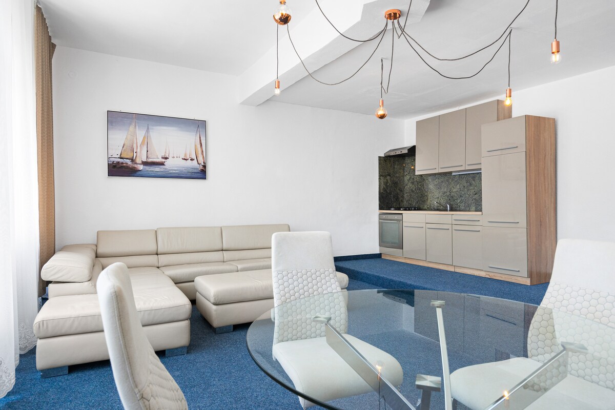 シベニク市中心部にある真新しいThe XY Suites Boutique Apartmentです。 素晴らしいデザインが施された素晴らしいアパートで、理想的なロケーションにあります。 市場、フェリー、旧市街、バス停まで徒歩圏内です。 すべてが新品で、設備の整ったキッチン、大型スマートテレビを備えたリビングルームがあります。 エアコン完備、無料高速Wi-Fi、設備の整ったキッチン、屋内ランドリー。 リビングエリアのソファラウンジでは、4人家族で快適にお休みいただけます。
