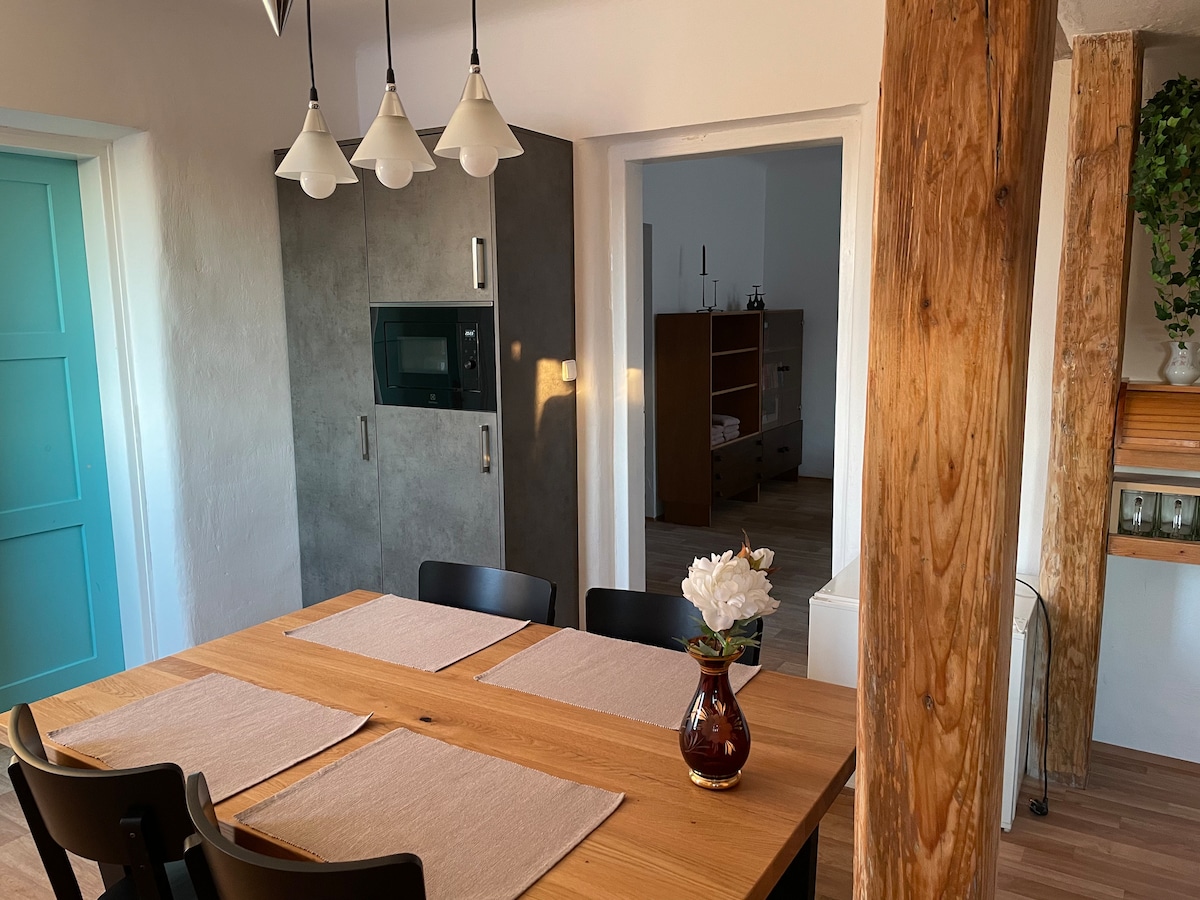 このアパートメントは、平和と安らぎを求める人々に快適な滞在を提供します。森からほど近い、牧草地に囲まれた美しく静かな自然の中にあります。自然愛好家、キノコ狩り、犬の飼い主、子供連れの家族、サイクリスト、スキーヤー、ロマンチックな人々に歓迎される宿泊施設備。アパートメントは、独立したユニットとして、上品に、そして歴史を感じさせる要素で装飾されています。一年中貸し出しています。アパートメントには庭があり、そこで火のそばで快適な夜を過ごしたり、ソーセージを焼いたり、鳥の歌を聞いたり、朝のコーヒーとおいしい朝食をパーゴラの下で楽しんだりできます。