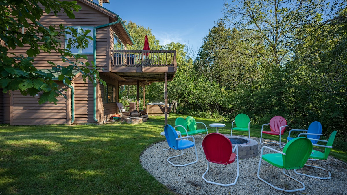 Driftless Hausでくつろごう!露天風呂*ファイヤーピット*暖炉