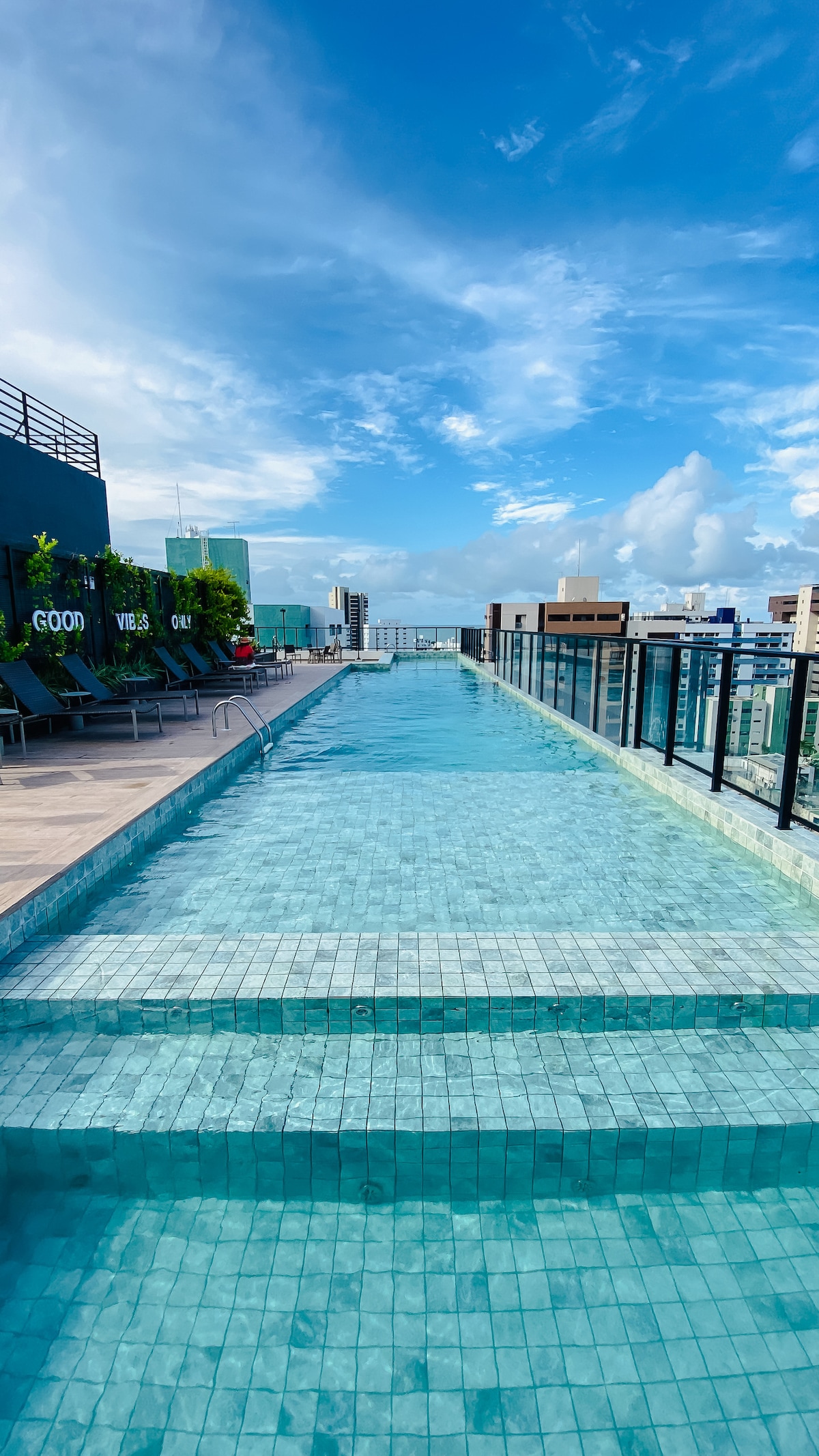 New 44m² apartment just 50m from Cabo Branco beach. Private jacuzzi (non-heated), spacious bathroom, ground floor, no stairs. On the rooftop: infinity pool and heated jacuzzi, both with ocean views. Includes full linen set, extra bed, air conditioning, dishes, SmartTV, minibar, and Nespresso coffee machine. The building offers co-working space, Wi-Fi, gym, 24h front desk, rotating parking, and buffet breakfast available on-site (charged separately).