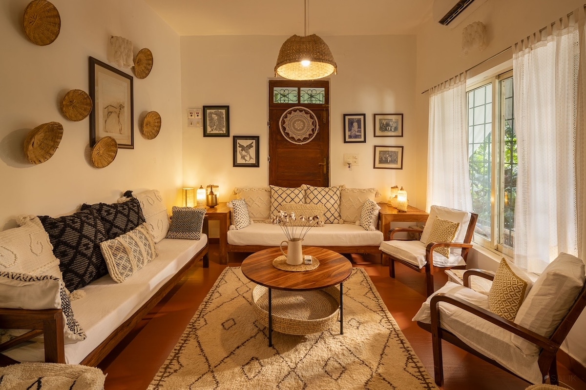 「大地のエレメント」にインスパイアされたPrithvi, Talpona Riversideは、タルポナ川沿いの静かなリバーフロントの隠れ家です。この広々とした1ベッドルームのアパートは、モダンな快適さと1970年代のゴアの魅力を兼ね備えています。風通しの良いリビングルームでくつろぎ、川の景色を楽しみ、ココヤシの木々に囲まれたプールでリラックスしましょう。この静かな隠れ家は、ゴアの時代を超えた美しさ、静けさ、自然とのつながりを体験するのに最適な快適な場所です。