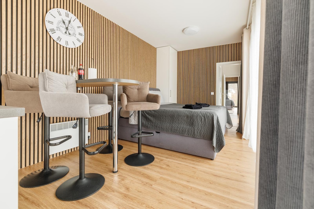 プラハの静かな地区にある新しいモダンなアパートメントは、公園のすぐ近くにあり、プラハの中心部からわずか15分です。都会の喧騒を求める2名様に最適です。忙しい1日の後、30m2のプライベートテラスで、パーゴラの下で、温水のジャグジーで、または広々としたプライベートサウナでリラックスしながら、快適な夜をお楽しみいただけます。ロマンチックな雰囲気を高めるには、電気暖炉をオンにするだけで十分です。共用ガレージに無料駐車場があります。
