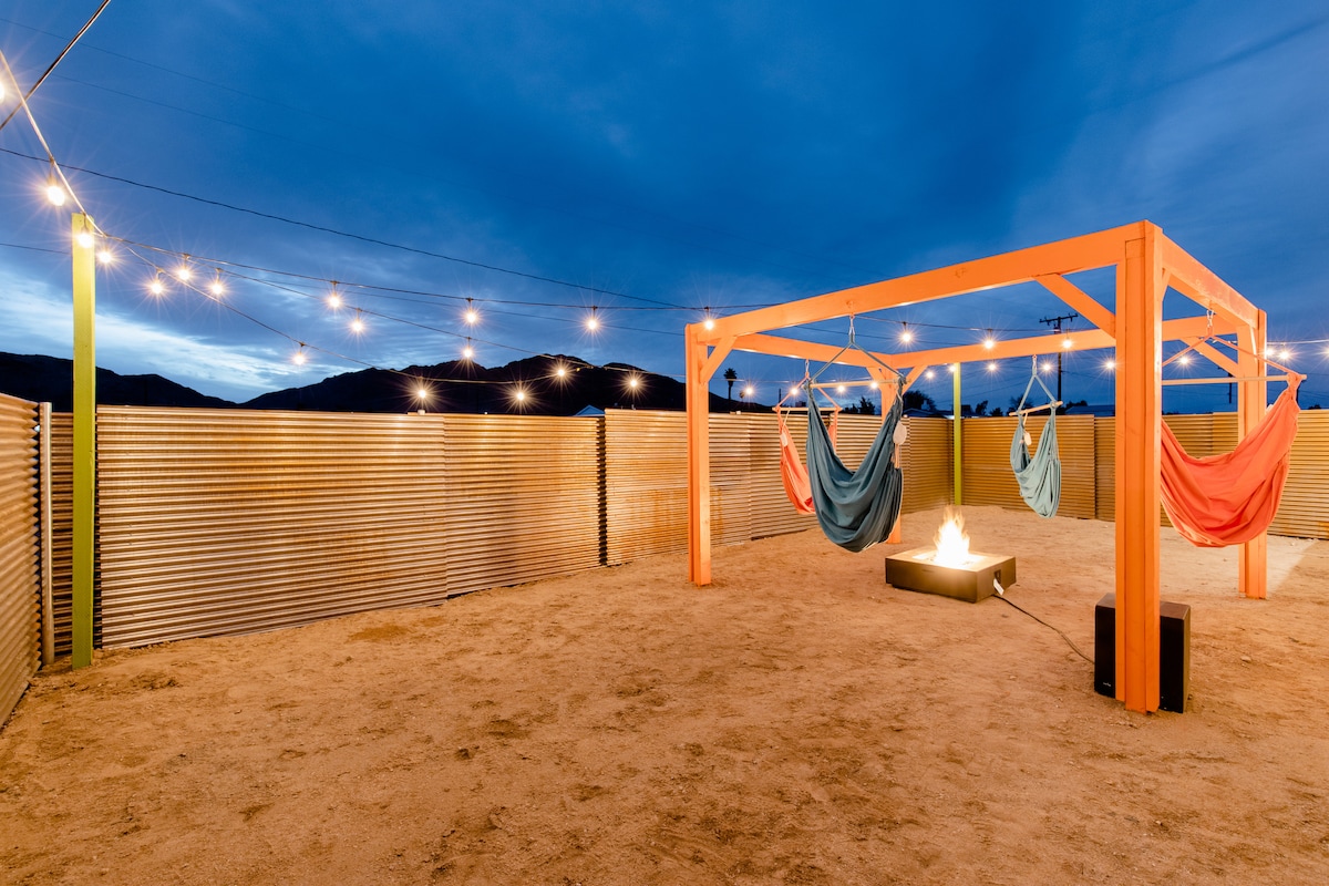 大好きな人と一緒に夢のような砂漠のリトリートに逃避しましょう🌙。ロマンスを求めるカップルでも、つながりを求める少人数グループでも、この居心地の良いリトリートにはリラックスするために必要なものがすべて揃っています。外に出ると、プライバシーと静けさが融合した、完全にフェンスで囲まれた庭があります。 ジョシュア・ツリー国立公園の西口まで15分 ジョシュアツリーのダウンタウンまで5分 ウォルマートまで12分 単なる宿泊先ではなく、リセットの場です!ジョシュアツリーの魔法を体験してください。