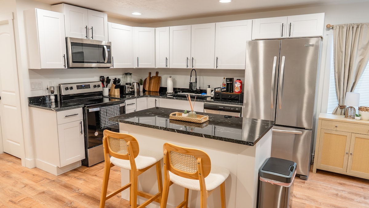 こちらは、専用の独立した入り口を備えた真新しい地下アパートで、到着した瞬間からシンプルでフレッシュ、そして気楽に過ごせるように設計されています。 カップル、小さな家族、またはユタ州を通過する人におすすめです。当スイートは高速道路の出口からわずか数分の場所にあり、チェックインと移動がとても便利です。 この1ベッドルーム/1バスルームの地下アパートには、本当に「しばらくここで暮らす」ために必要なものがすべて揃っています。