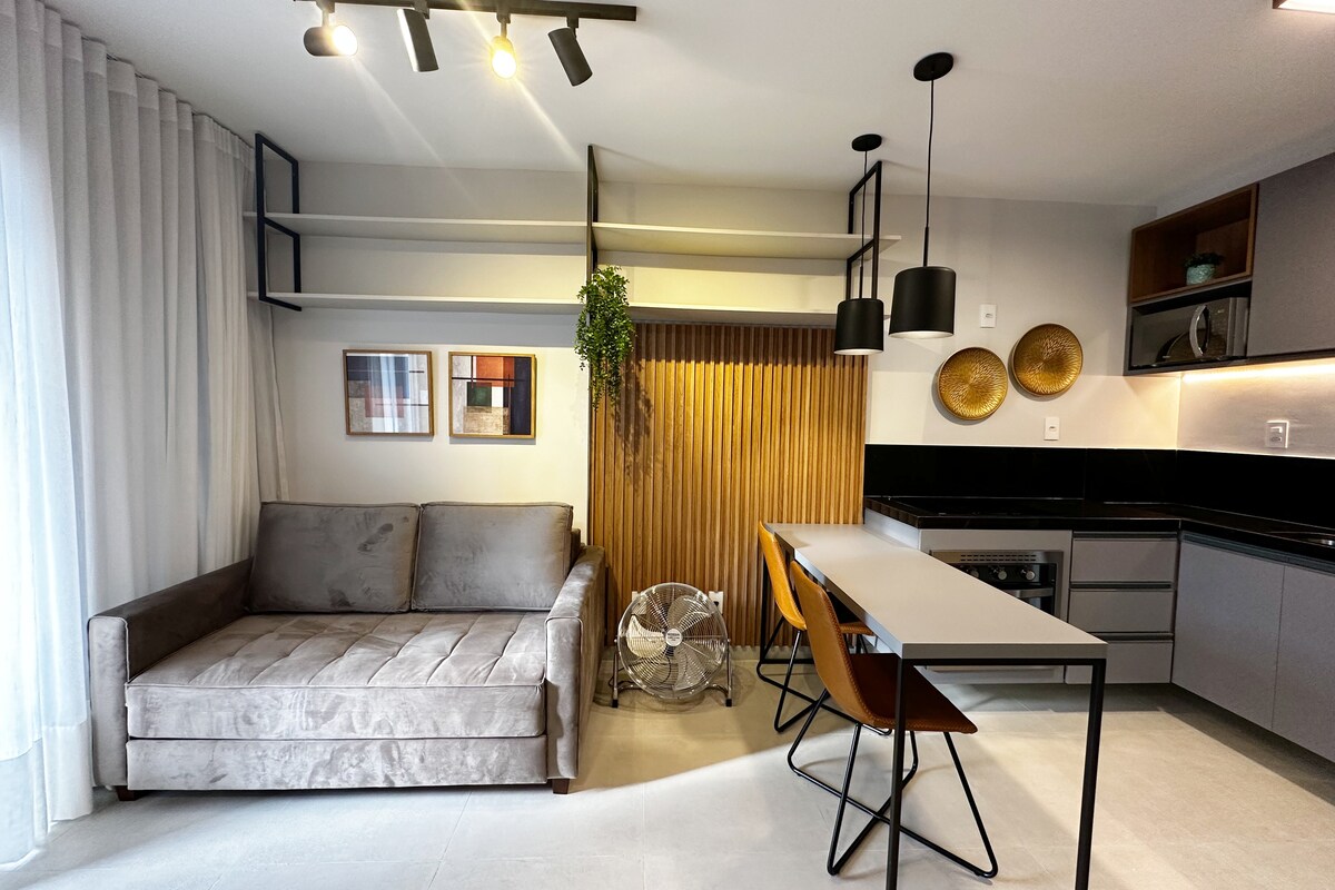新しいワンルームアパートメント、ガレージ付き。すべての家具が新しく、ゲストに最大限の快適さを提供するように設計されています。 すべてが近くにある、アイタマル・フランコ通りの真ん中で、 ブラジルリオブランコ通りの角にあります! ホームオフィスとレジャーを兼ね備えた理想的な場所です! プール、ジム、グルメエリア、コワーキング、キッズスペース、ランドリーを完備したレジャーエリアを備えています。 ガレージ付きの便利なロケーションにあるこのワンルームアパートで、他では味わえない体験をお楽しみください!