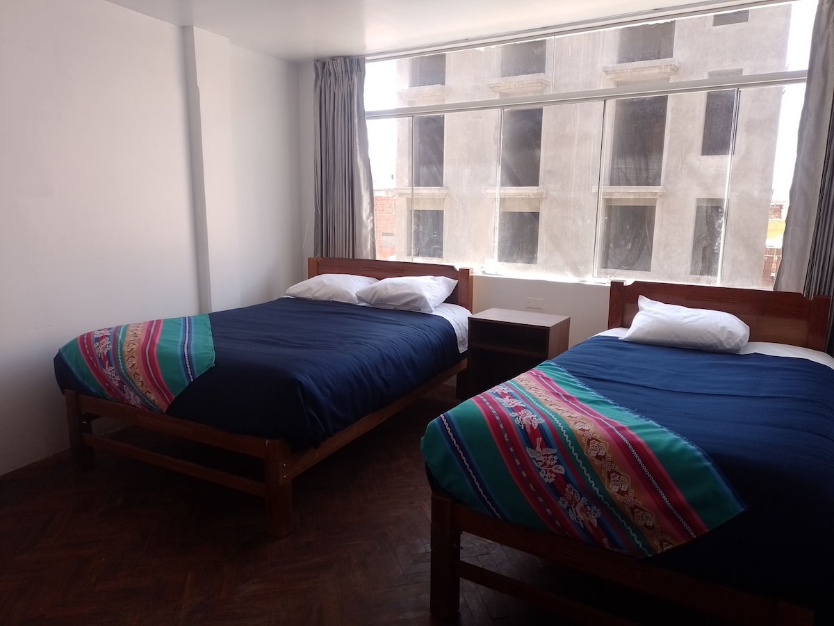 jr tumbes 1455. frente a mercado Manco Capac. habitaciones matrimoniales y simples para su estadía en Juliaca. La ubicación es céntrica a 6 cuadras de plaza vea. Las habitaciones son con acabados de piso de madera para una mayor calidez. Contamos con entrada privada para su mayor comodidad. Tomar en cuenta que se hace servicio de lavandería por un costo adicional. Adicional, brindamos un área para que el huésped pueda lavar su ropa si lo desea.
