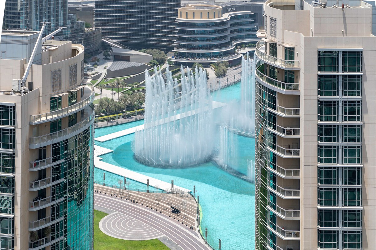 ブルジュ・ハリファと噴水の眺望を楽しめる高級3寝室