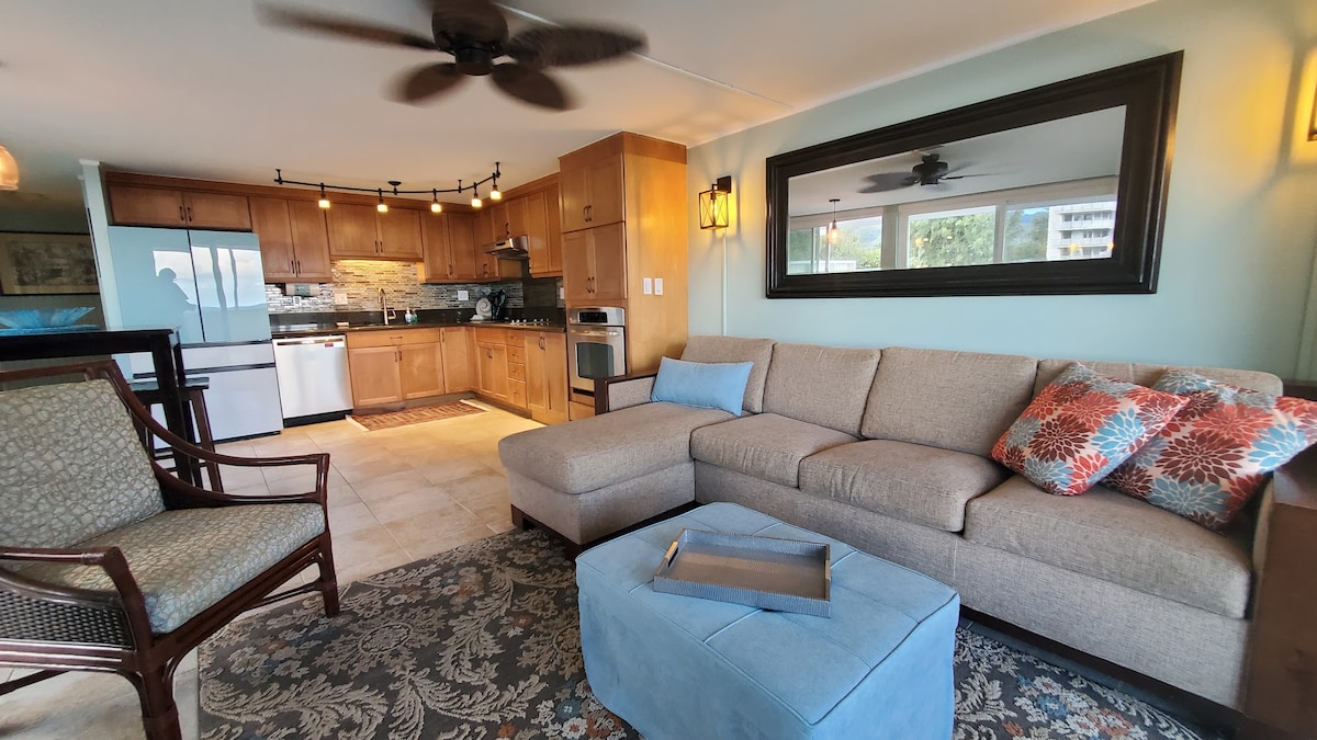 このエンドユニットには、光と貿易風を取り入れるための3組のドアがあります。建物内で最大のラナイがあります。 注:この建物は工事中のため、騒音が発生する可能性があり、敷地外の近くに駐車場があります。ご宿泊の際にこれらの問題が許容できないと判断された場合は、ご連絡ください。未宿泊分の料金は全額返金いたします。 カレンダーで日付が見つからない場合は、ホストにメッセージを送ってください(下までスクロール)。島には他のコンドミニアムもあります。