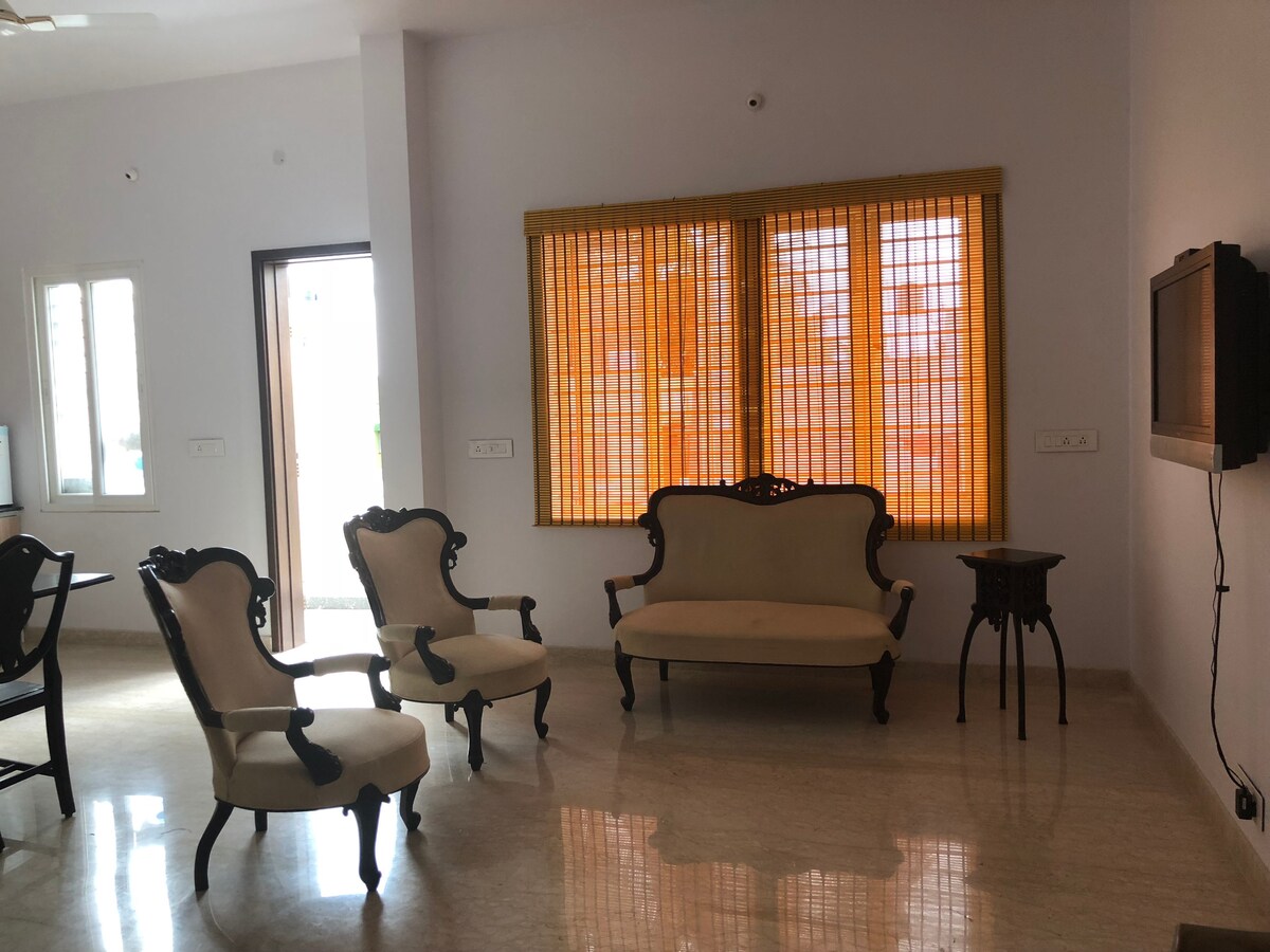 独立した家、1階、2ベッドルーム、専用バスルーム(エアコン付きベッドルーム1室、実際の使用量に基づいてエアコンの追加料金)、台座ファン、24時間温水、48インチテレビ、無停電電源バックアップ照明とファンのみ(約4時間)、Wi-Fi、大きなテラス日の出景色、バルコニー、プージャルーム、オープンキッチン、冷蔵庫、LPG、ミキサーグラインダー、調理器具、ユーティリティエリア、自動洗濯機、虫よけメッシュ、スチール製食器棚、オープン収納ラック、駐車場、医療キット。