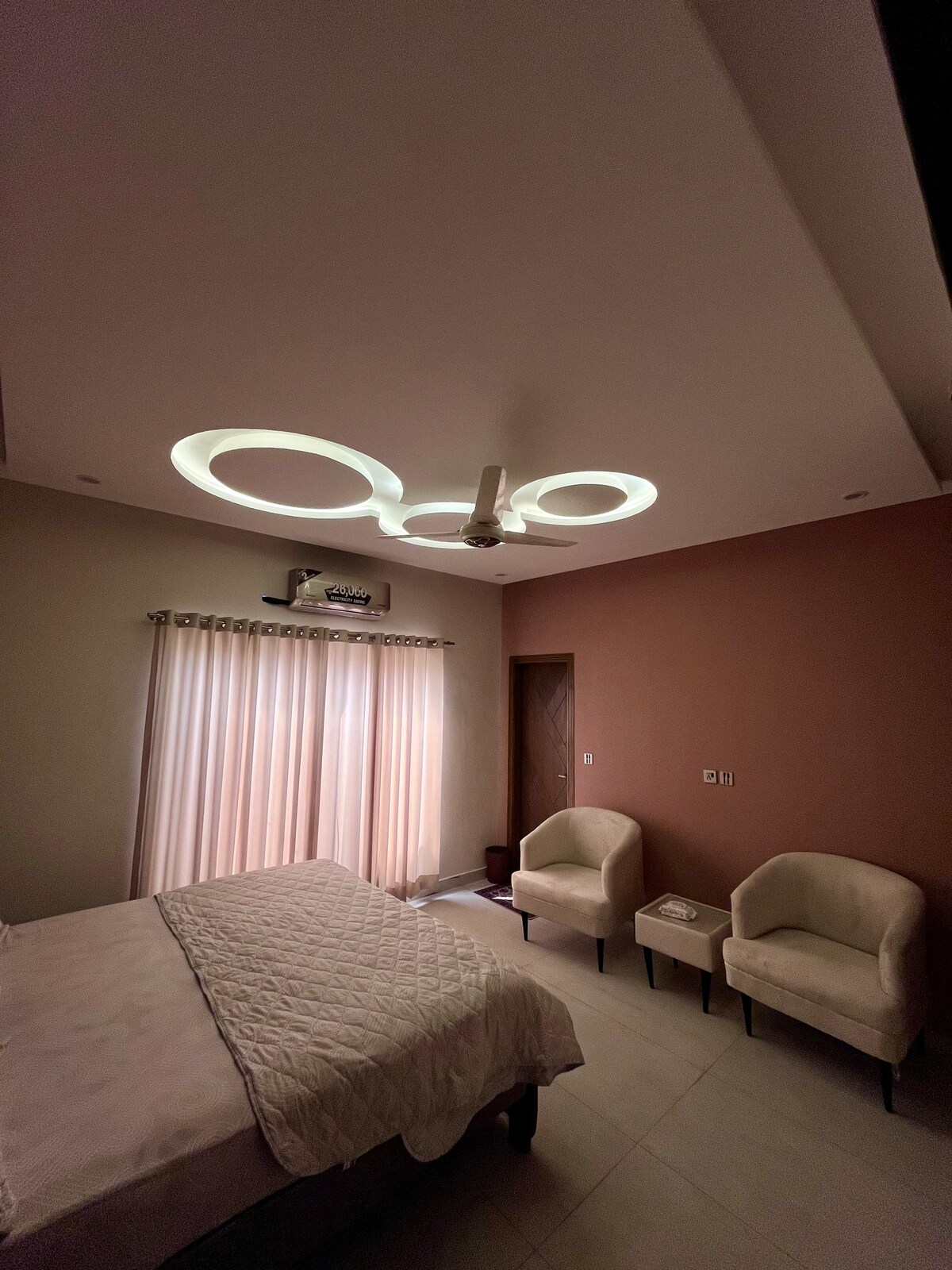 フローティングベッド、星空の天井、エレベーターへのアクセス—ムルタンで最も美しい1ベッドの滞在。 エスケープオーラ – ブックヴィラズ(ムルタン)での豪華な滞在 星空の天井、フローティングベッド、エレガントなダークライトをテーマにした、ムルタン初の美しいアパートを体験してください。セルフチェックインとチェックアウトで完全なプライバシーをお楽しみください。 ブックヴィラにあり、Imtiaz Mega Mart、ユニバーサルシネマ、ブック国際病院からわずか数歩です。 ご家族連れと認証済みのゲストのみ受け付けています。未婚のカップルはお断りします。パーティーは禁止です。